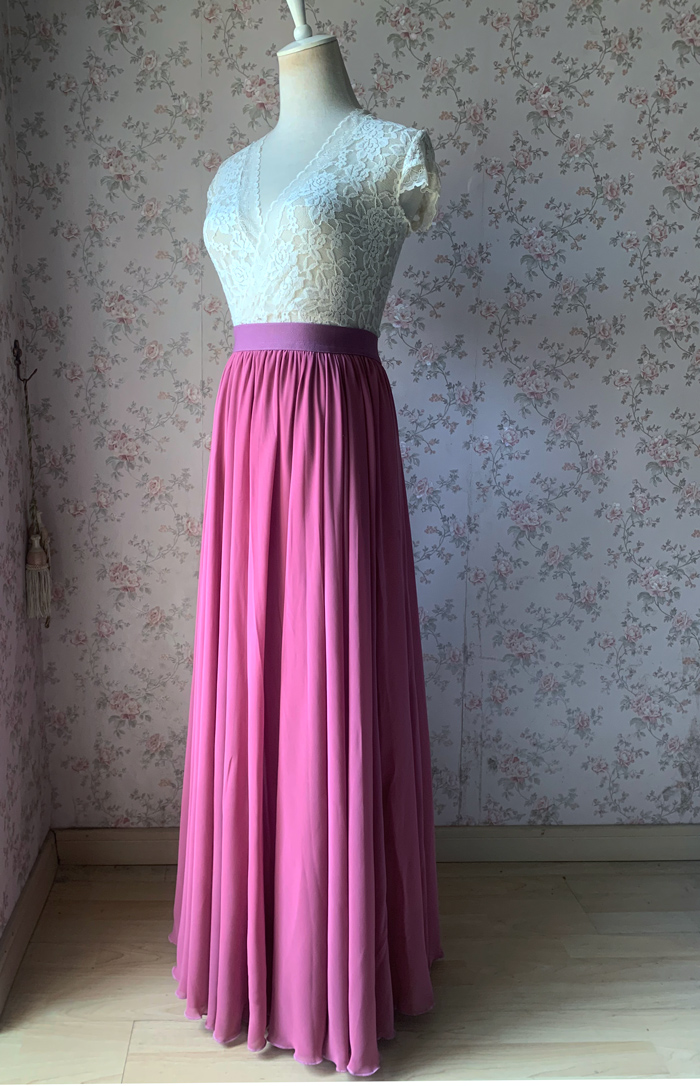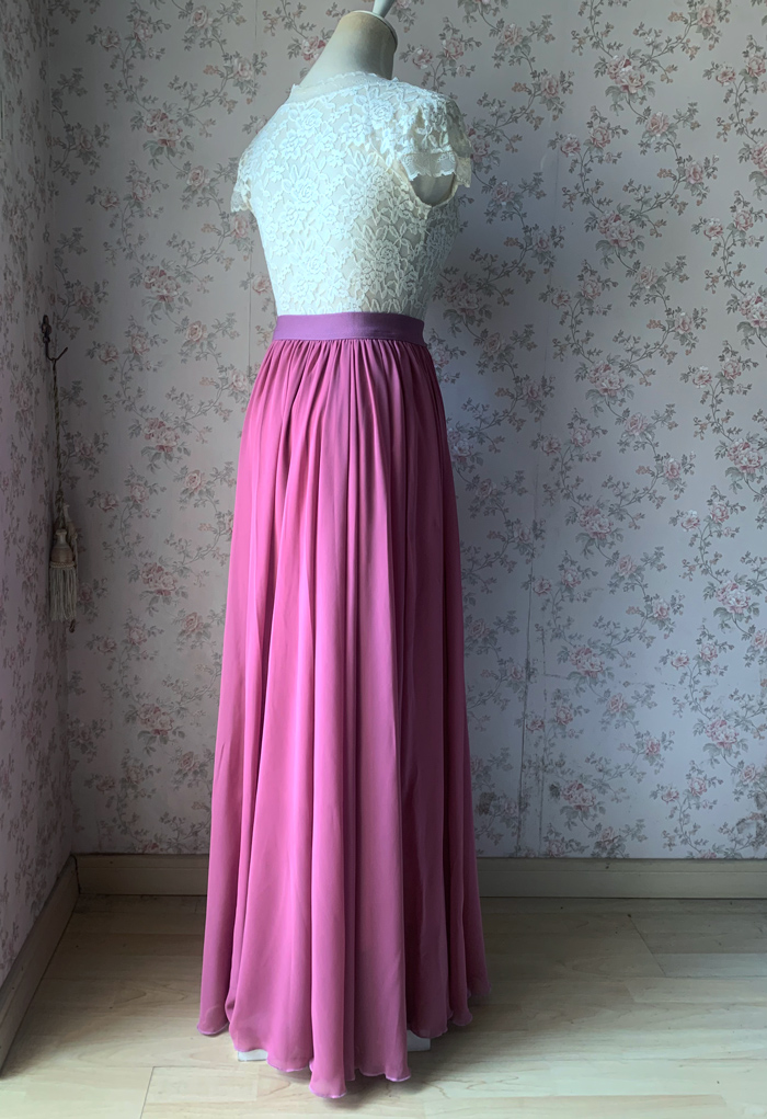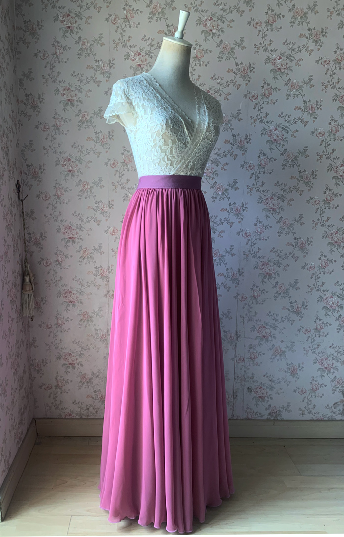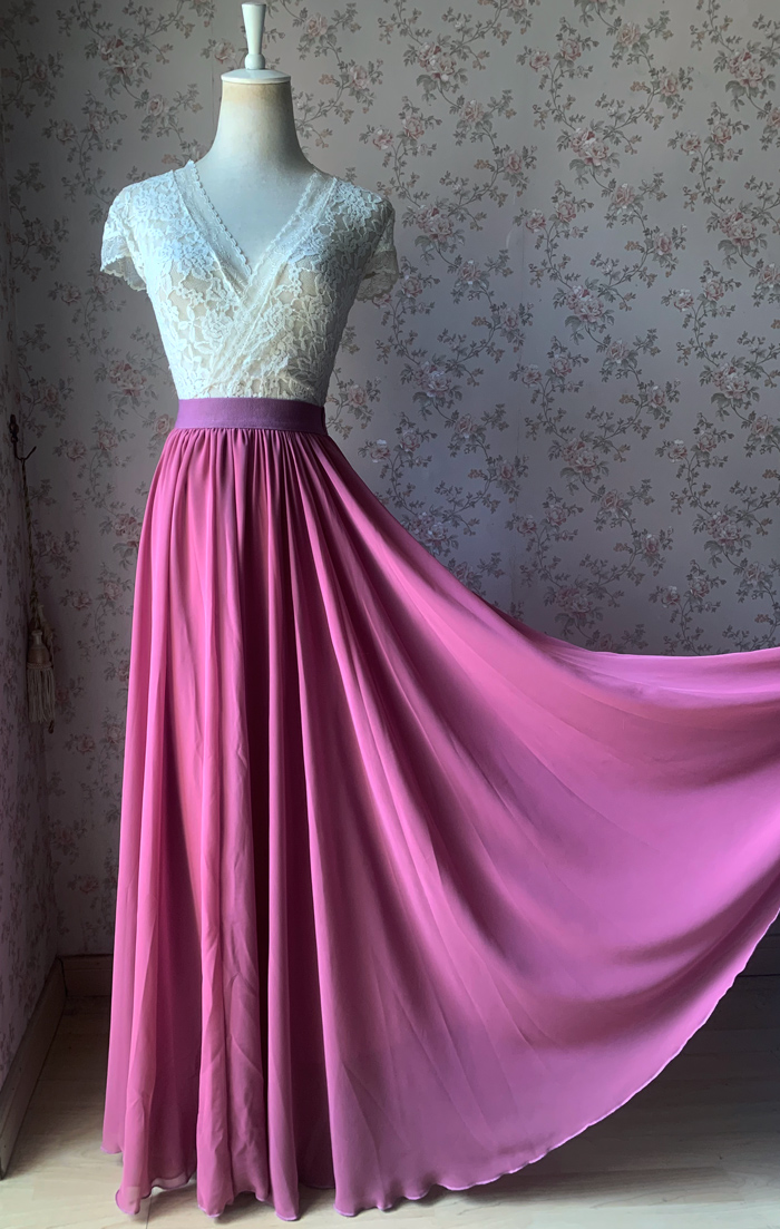 Women Plum Purple Chiffon Maxi Skirt High Waist Long Chiffon Skirt Yellow Chiffon Maxi Skirt Summer Wedding Bridesmaid Skirt Plus Size