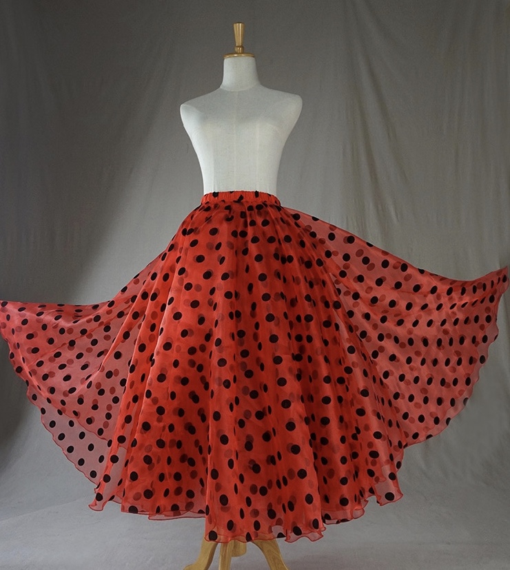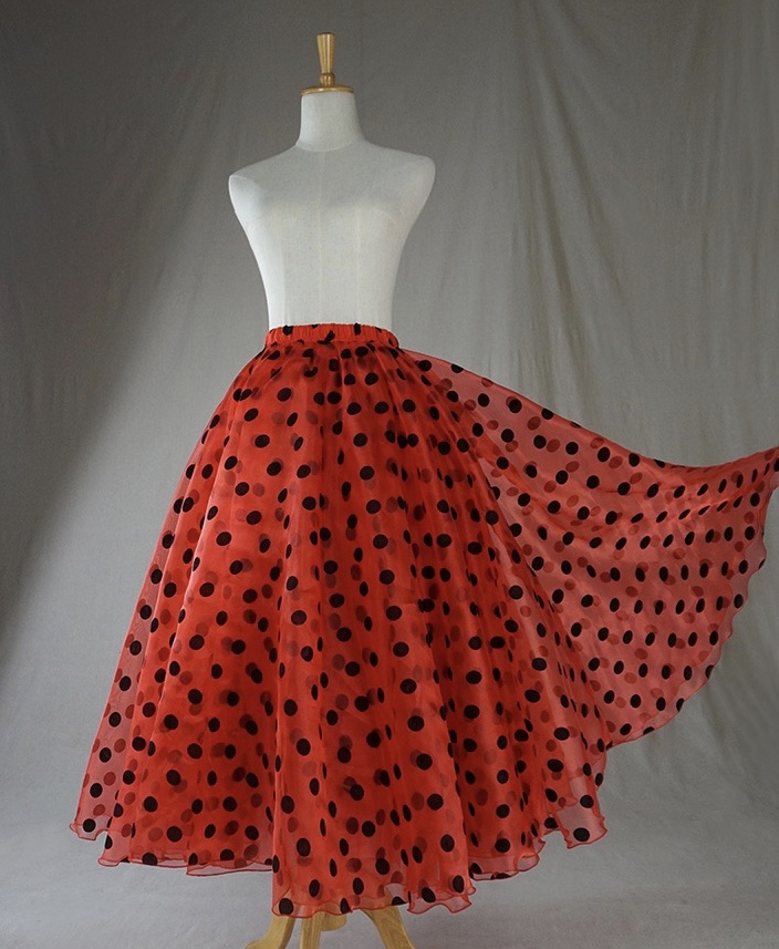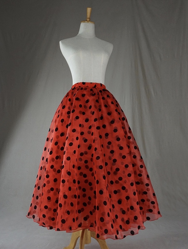 RED Polka Dot Tulle Maxi Skirt Outfit A-line Wedding Tulle Skirt Plus Size High Waist Layered Tulle Skirt