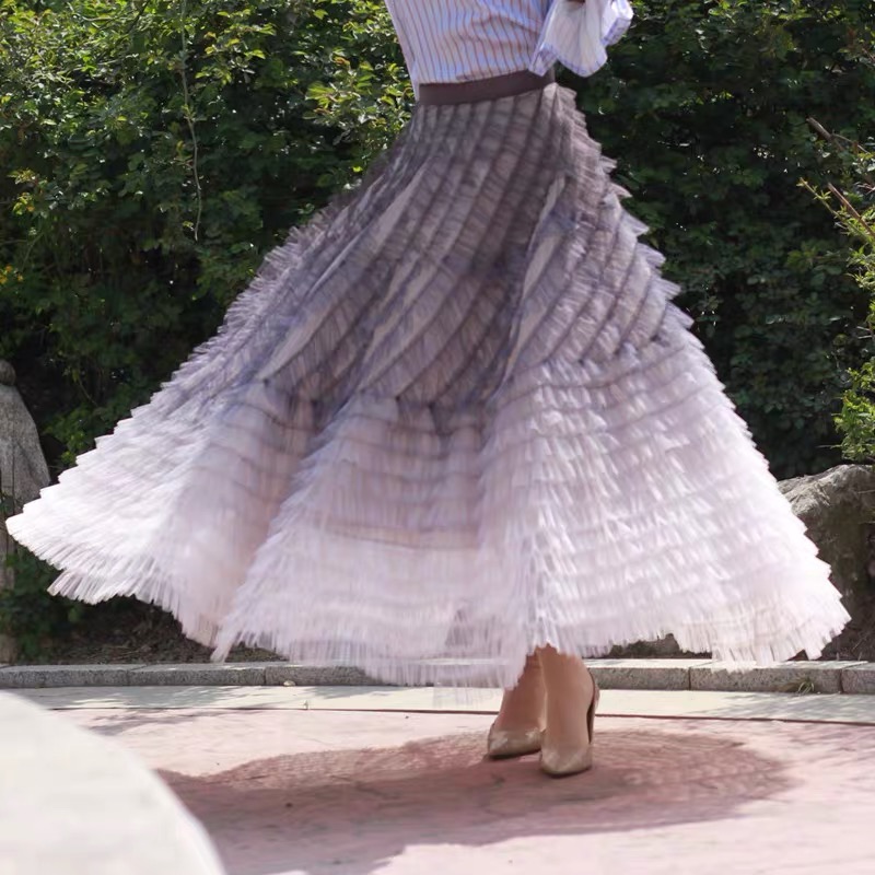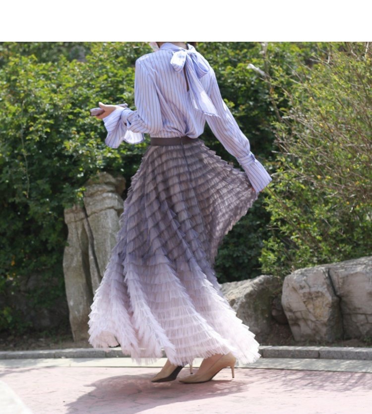 Women Layered Long Tulle Skirt Romantic Gray Full Plus Size Tiered Tulle Skirt Outfit Holiday Party Dance Skirt