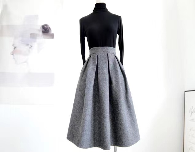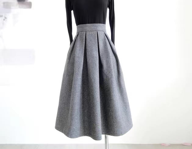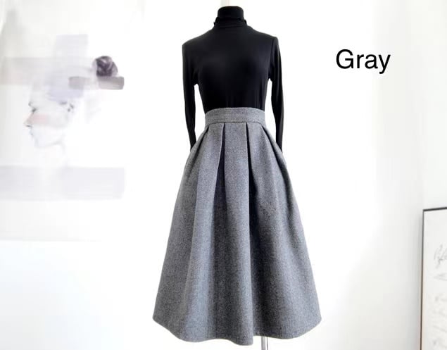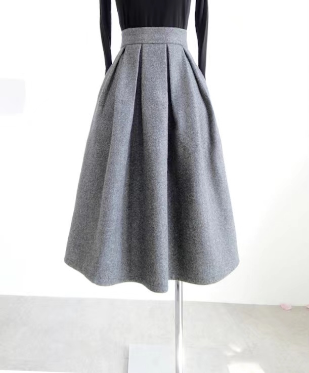 Autumn Winter Midi Skirt Outfit Wool Blend Pleated Party Skirt Women Custom Custom Plus Size A-line Pleated Midi Holiday Outfit