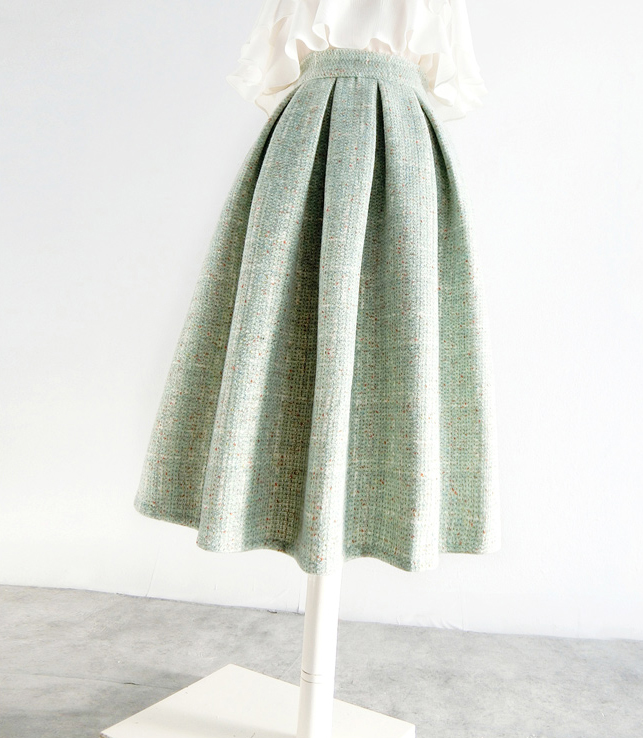 Winter Pleated Midi Skirt Light Green High Waisted Pleated Party Skirt Outfit Custom Plus Size Midi Homecoming Skirt