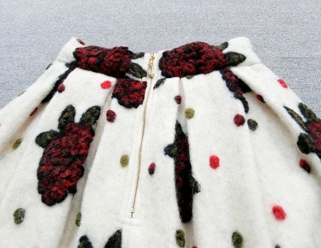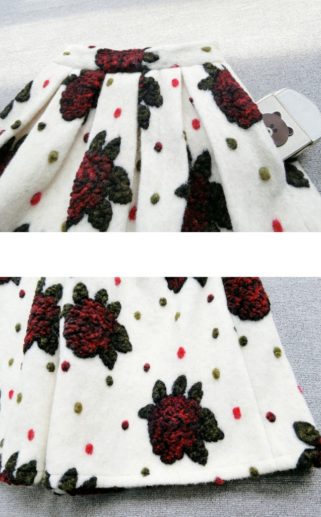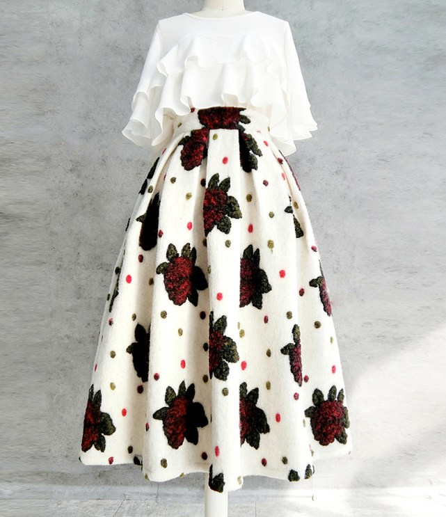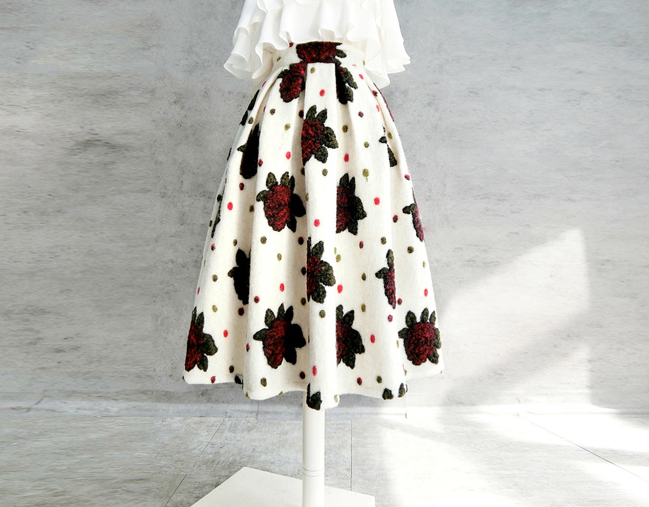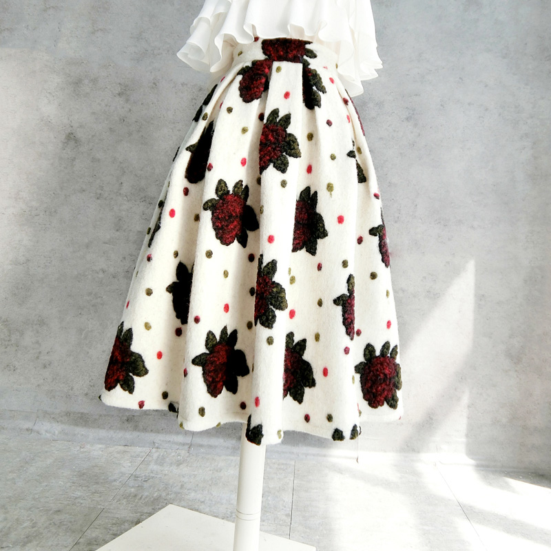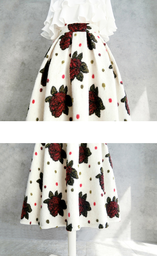 Warm Floral Woolen Skirt Pleated Midi Holiday Outfit Plus Size Christmas Outfit
