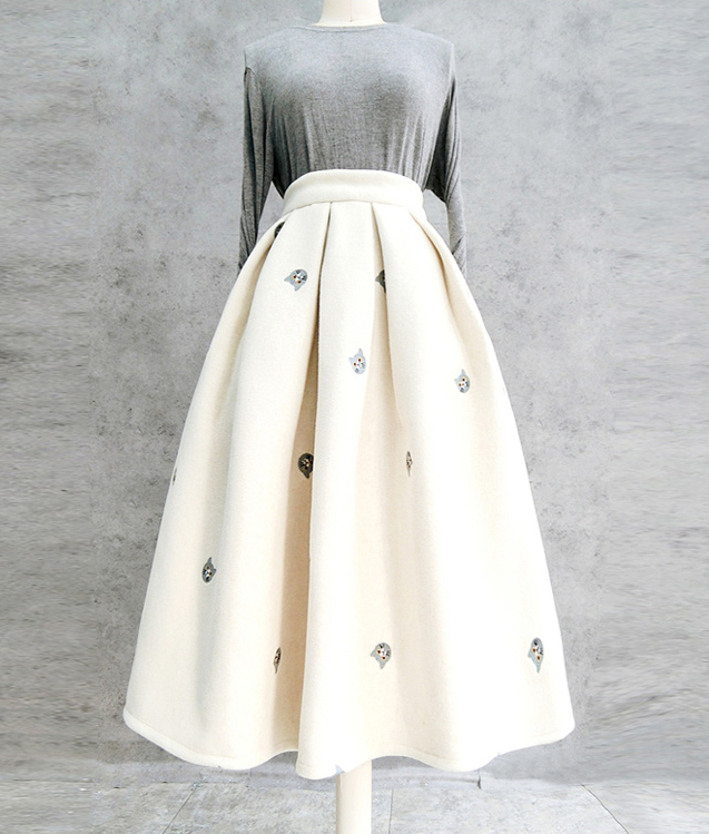 WOMEN WINTER FULL PLEATED SKIRT Winter Woolen Midi Skirt Embroidery Pleated Party Skirt Plus Size Pleated Skirt Outfit Winter WARM HOLIDAY Skirt for women is our shop's new items.