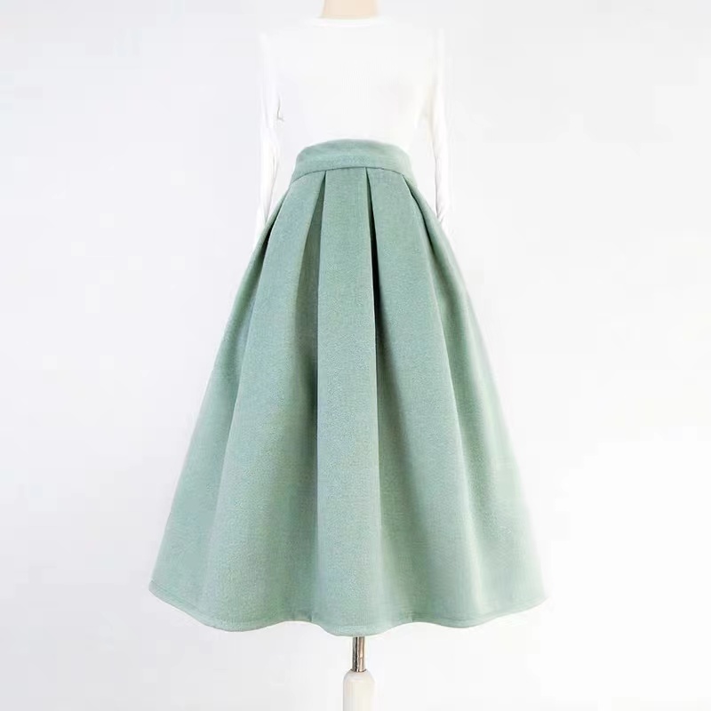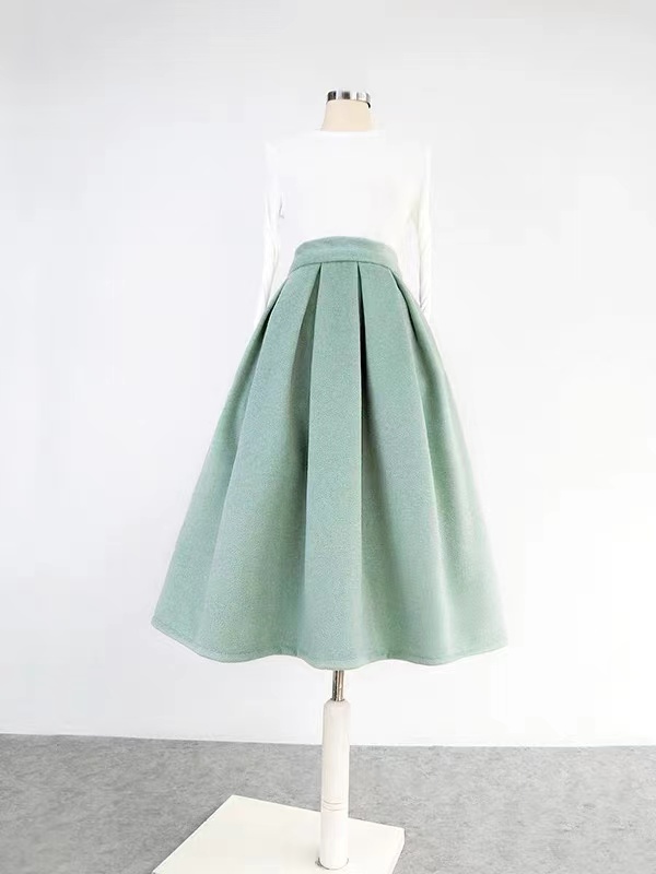 Women Winter Mint Green Woolen Skirt High Waisted Mint Green Holiday Party Skirt Warm Custom Plus Size Christmas Outfit