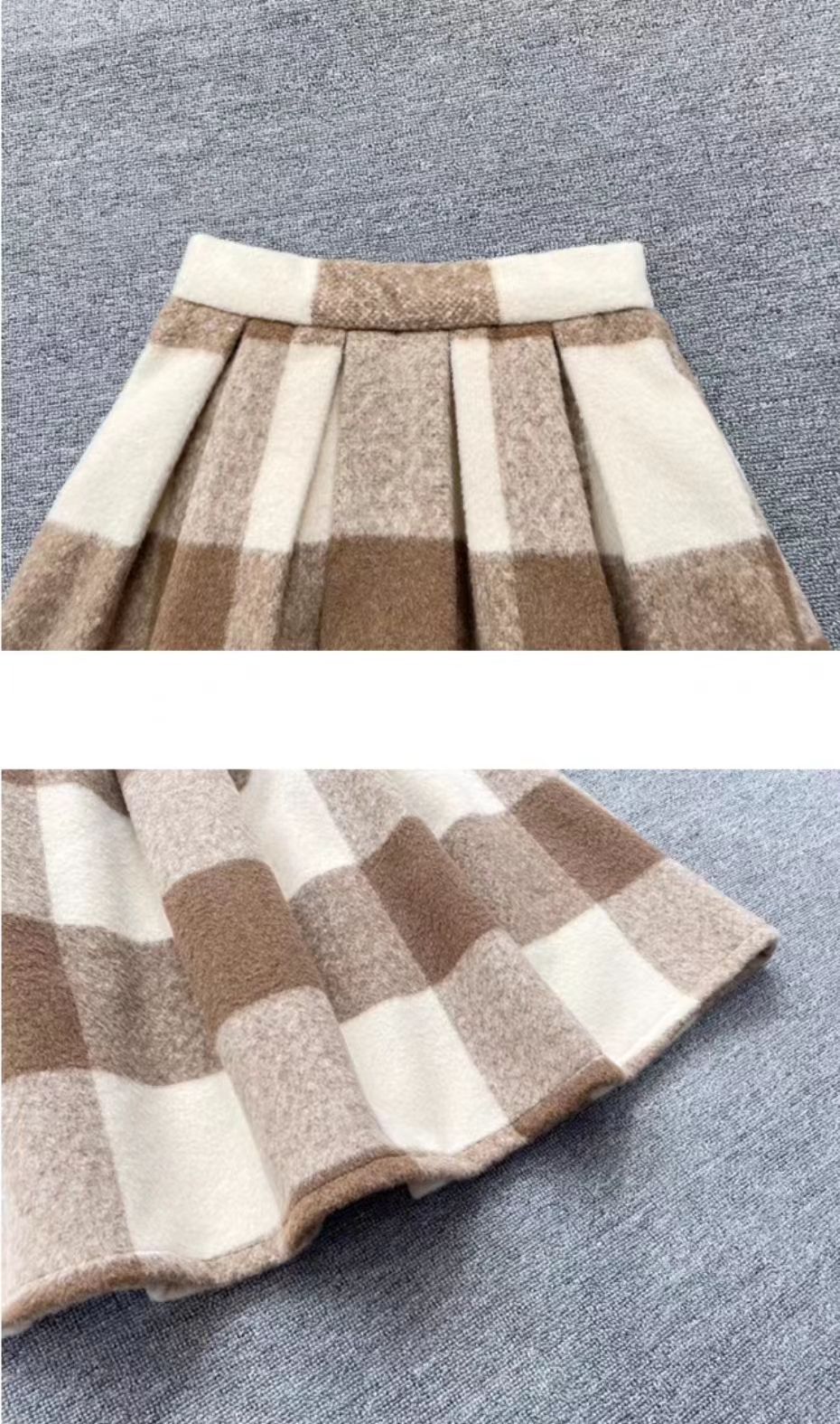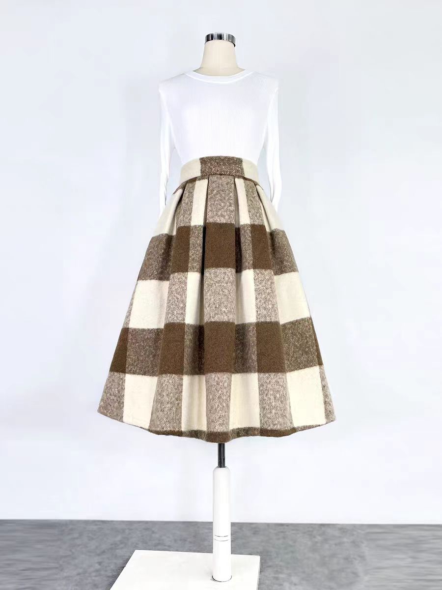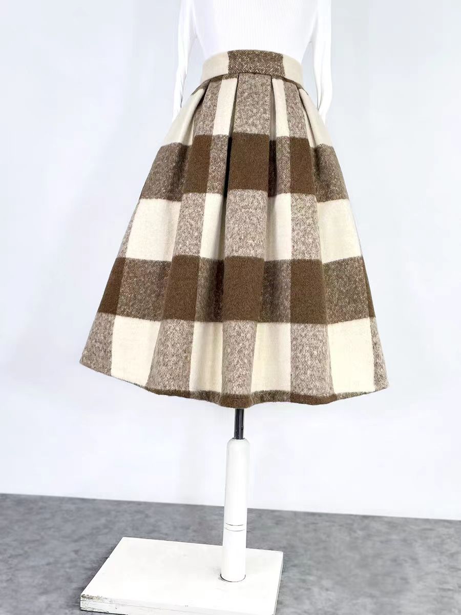 Winter PLAID Holiday Party Skirt Outfit High Waist Pleated Midi Pleated Skirt Warm Woolen Midi Party Skirt Plus Size Winter Holiday Outfit
