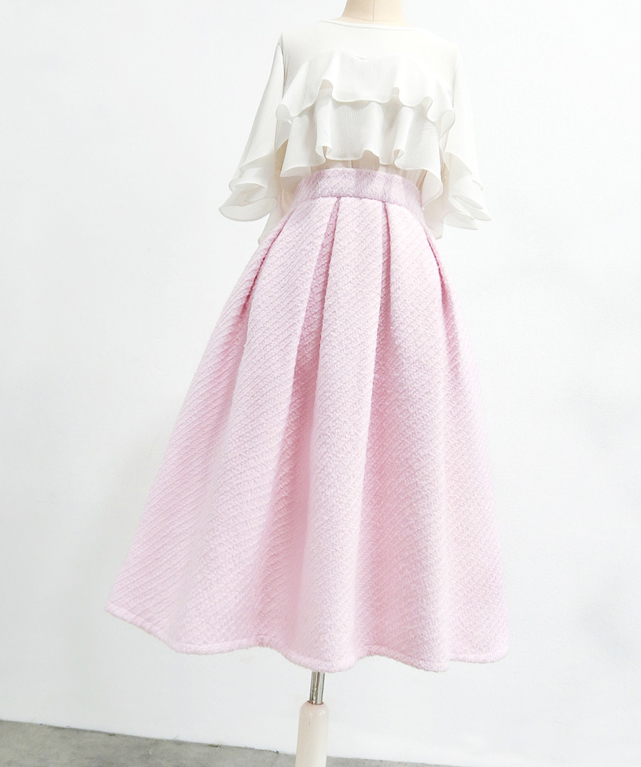 Women Winter Midi Skirt Blush Pink Romantic Party Skirt Outfit Custom Plus Size Full Pleated Skirt Tea Length Christmas Holiday Outfit.