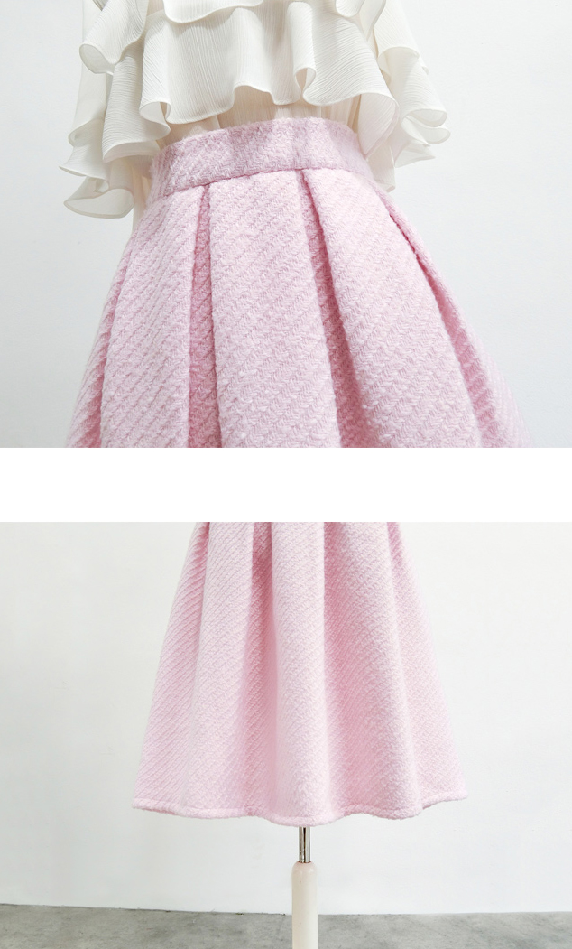 Cute Winter Pink Party Skirt Outfit High Waist A-line Pleated Midi Pleated Skirt Warm Midi Party Skirt Plus Size Christmas Outfit