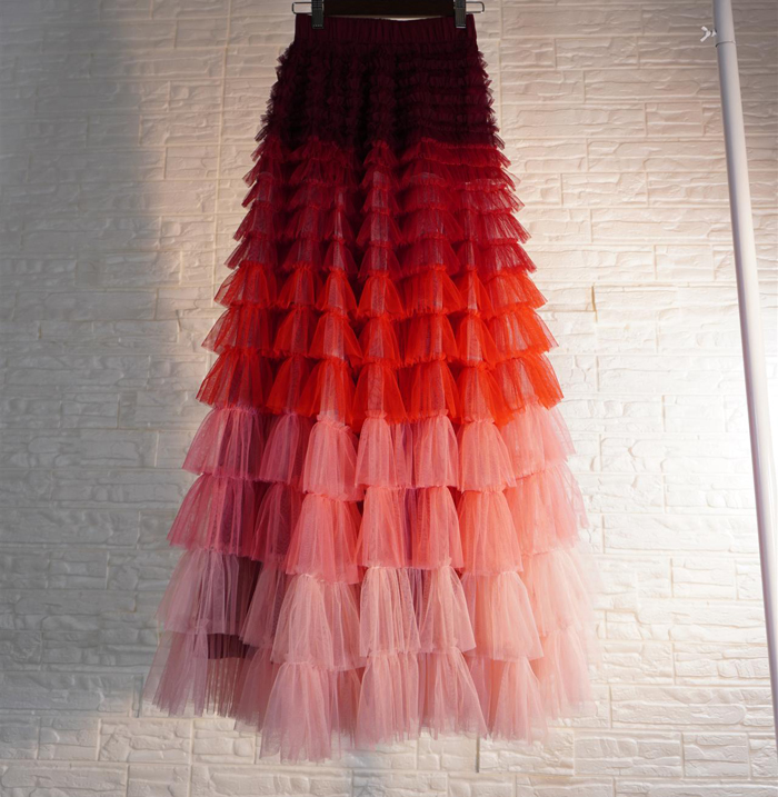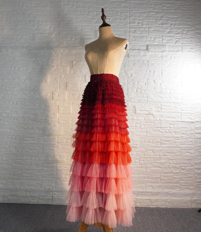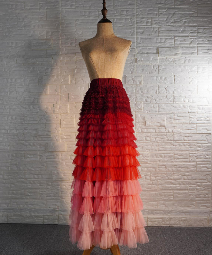 Red Maxi Tiered Tulle Skirt Layered Tulle Maxi Skirt Wedding Bridesmaid Tulle Skirt Custom Plus Size Holiday Outfit