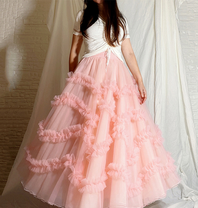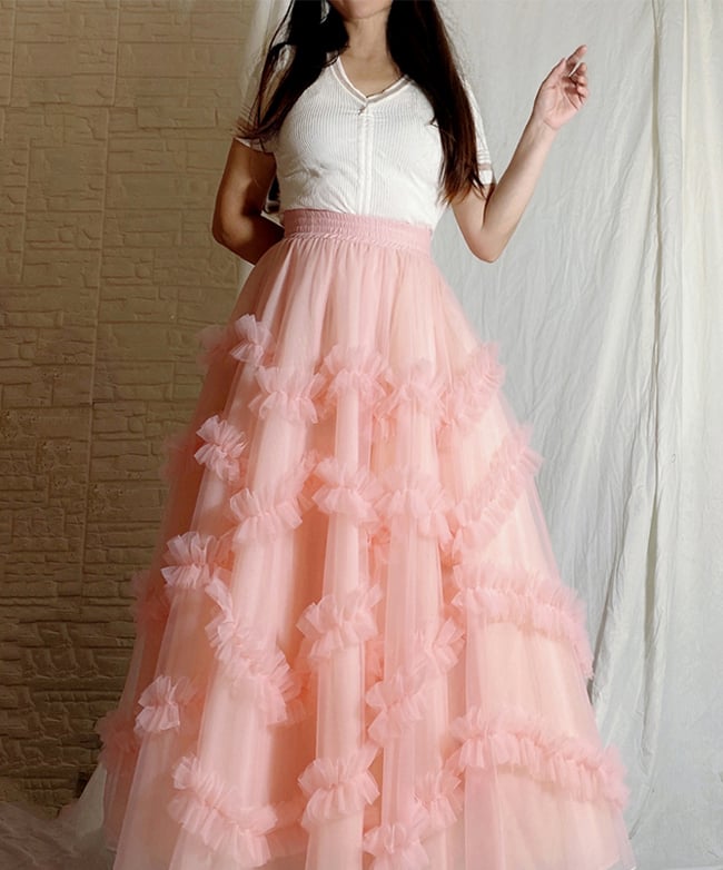 Women BLUSH PINK Layered Tulle Skirt Blush Wedding A-line Tulle Maxi Skirt Outfit