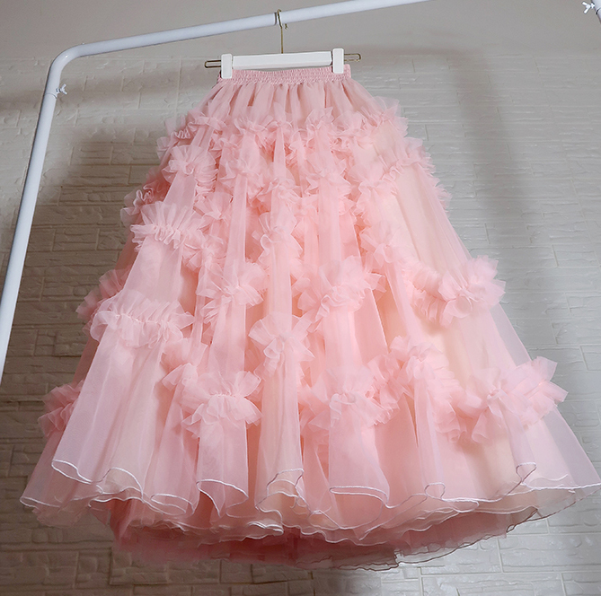 WOMEN A LINE BLUSH PINIK TULLE SKIRT HANDMADE PINK FLORAL FULL TULLE MAXI SKIRT WEDDING PHOTO OUTFIT YELL HIGH WAISTED CUSTOM ANY SIZE BLUSH TULLE SKIRT OUTFIT PUFFY BUBBLE TULLE TUTU SKIRT