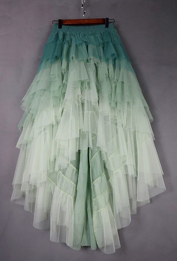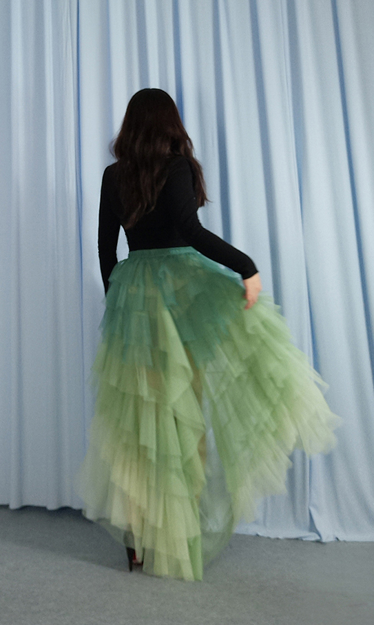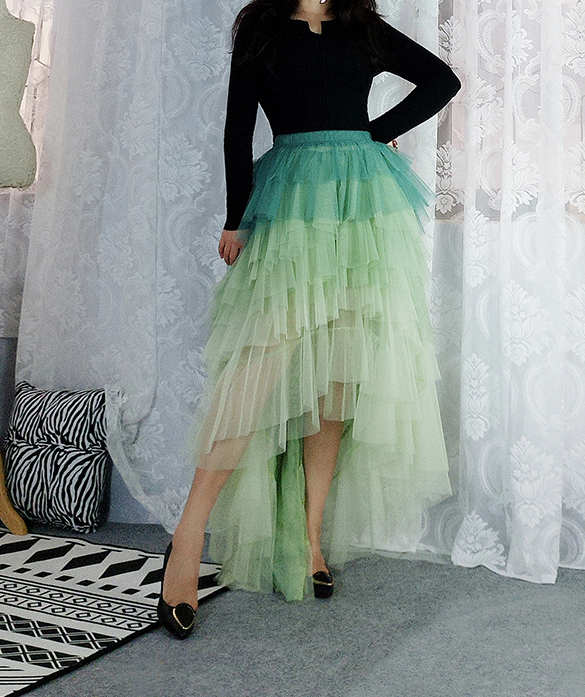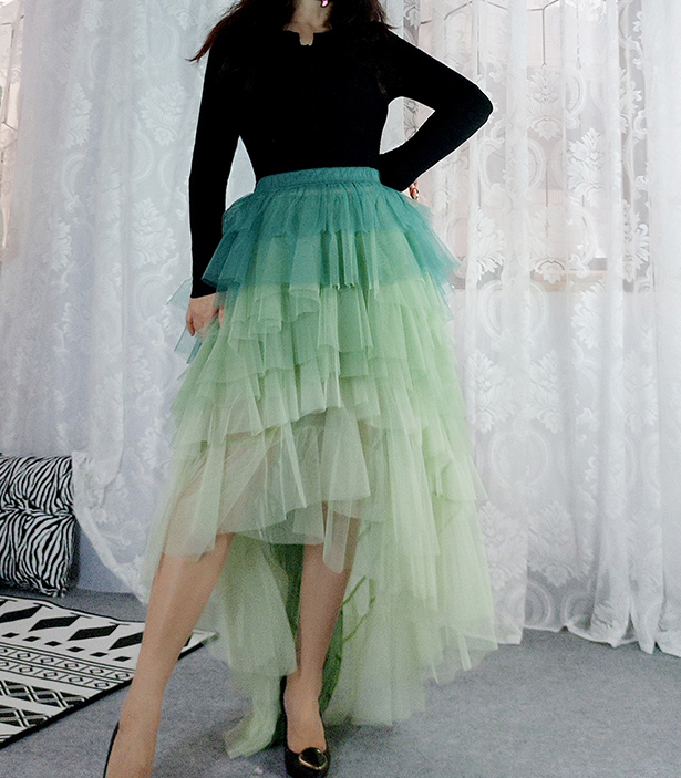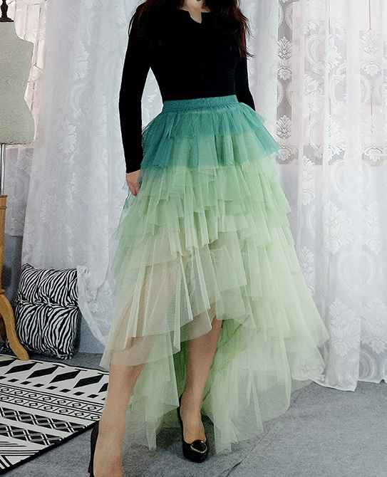 Sage Green Tiered Maxi Tulle Skirt Women High low Layered Tulle Skirt Green Wedding Outfit