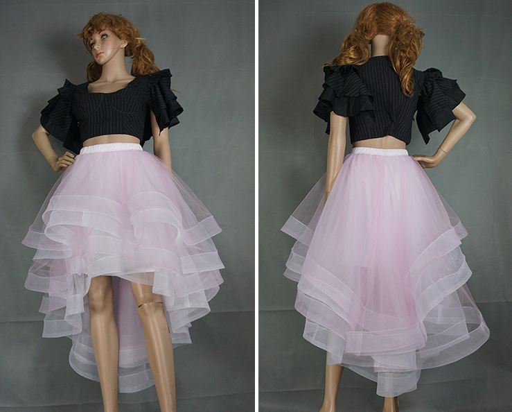 Pink High Low Long Tulle Skirt Pink Wedding Outfit High Waisted Hi-lo Layered Tulle Skirt Romantic Skirt Custom Plus Size
