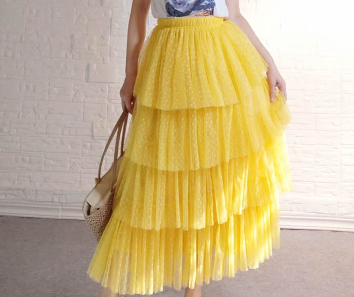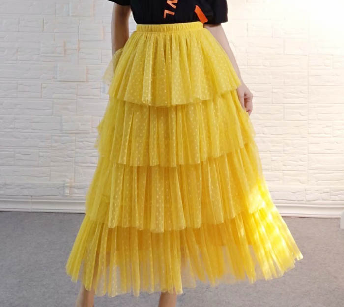Romantic Yellow Polka Dot Layered Tulle Skirt Custom Any Size Yellow Princess Skirt Holiday Outfit