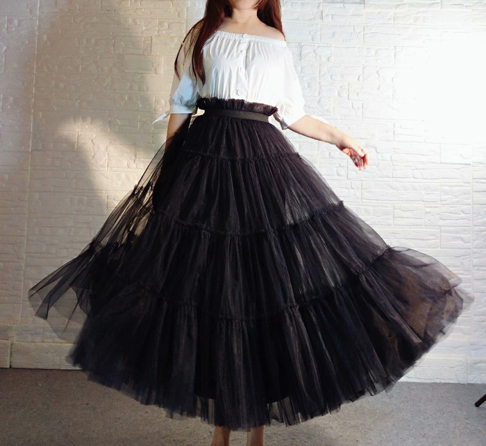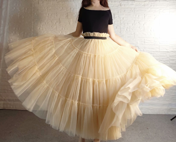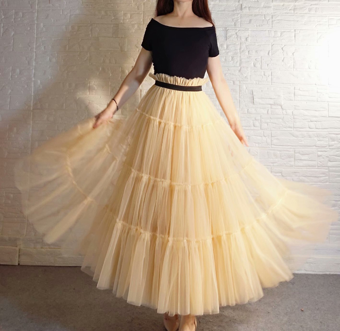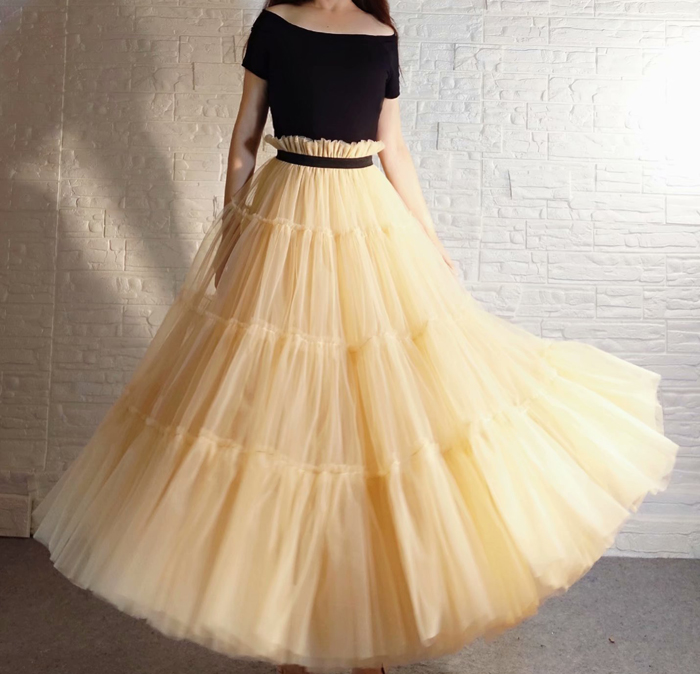 WOMEN TIERED LONG TULLE SKIRT OUTFIT ROMANTIC TULLE MAIX SKIRT CUSTOM PLUS SIZE WEDDING LONG SKIRT OUTFIT FLOOR LENGTH YELLOW LONG TULLE SKIRT, Many colors for choices, custom available