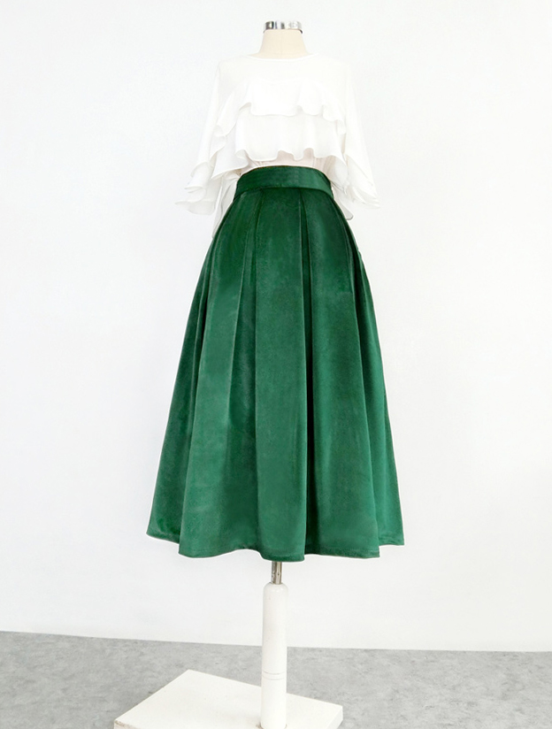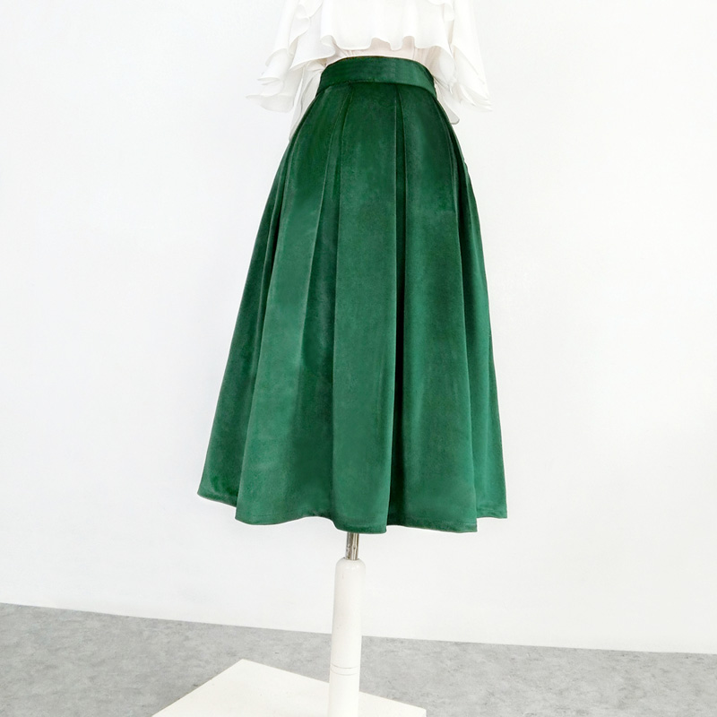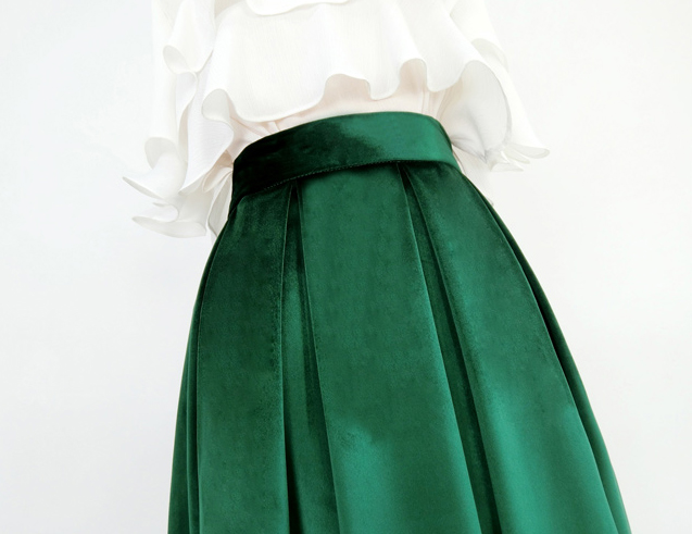 Women Emerald Green Midi Pleated Skirt Winter Velvet Holiday Midi Pleated Skirt Custom Plus Size