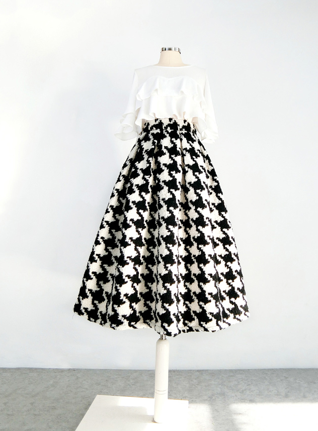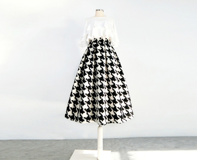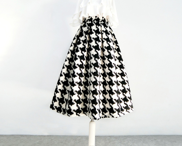 WOMEN BLACK WHITE HOUNDSTOOTH SKIRT WOMEN WINTER PLEATED SKIRT HOUNDSTOOTH WARM WOOL SKIRT PARTY SKIRT WOMEN HOUNDSTOOTH MIDI PLEATED SKIRT HIGH WAIST FULL PLEATED SKIRT CLASSIC BLACK MIDI SKIRT CUSTOM PLUS SIZE PARTY SKIRT TEA LENGTH HOUNDSTOOTH SKIRT Customized party skirt for women is our shop's new items.