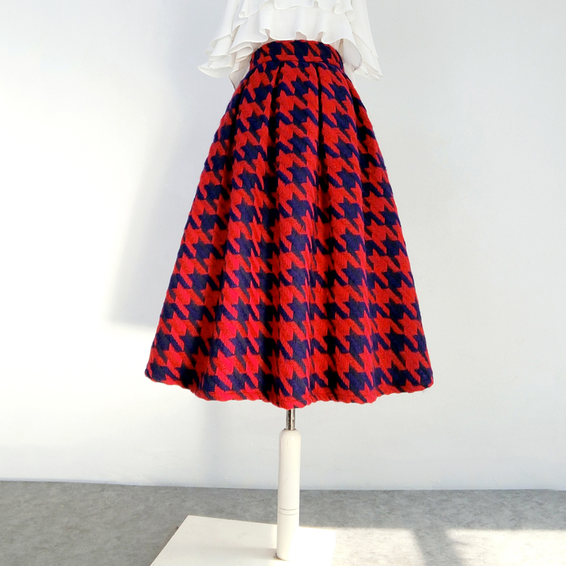Winter White Black Houndstooth Holiday Skirt Winter Thick Midi Pleated Skirt Wool Party Skirt Plus Size Pleated Skirt