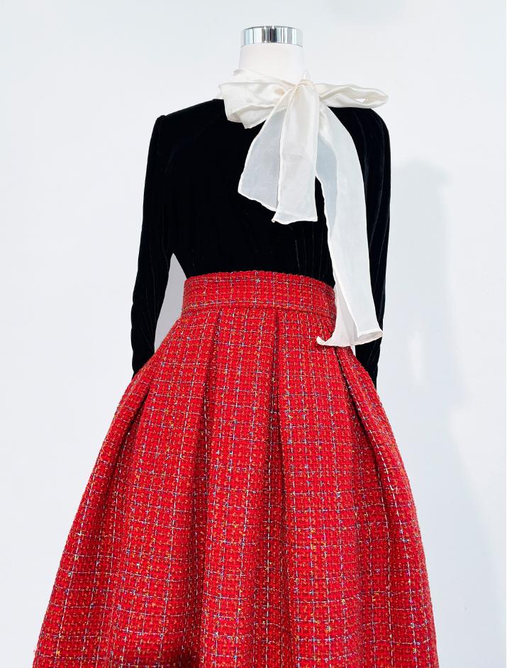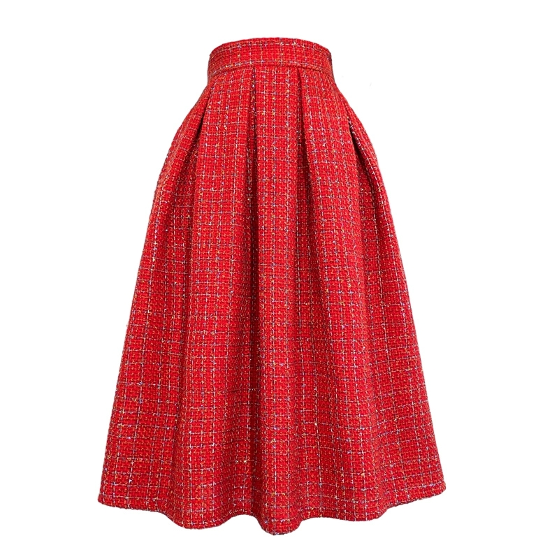 WOMEN Red Winter Holiday Skirt, Winter Midi Pleated Skirt, RED Woolen Party Skirt , Plus Size Full Pleated Party Skirt OutfitCustomized party skirt for women is our shop's new items.