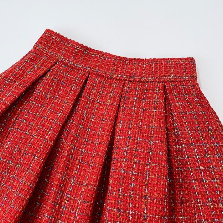 Red Winter Holiday Skirt Winter Midi Pleated Skirt Woolen Party Skirt Plus Size Full Pleated Party Skirt Outfit