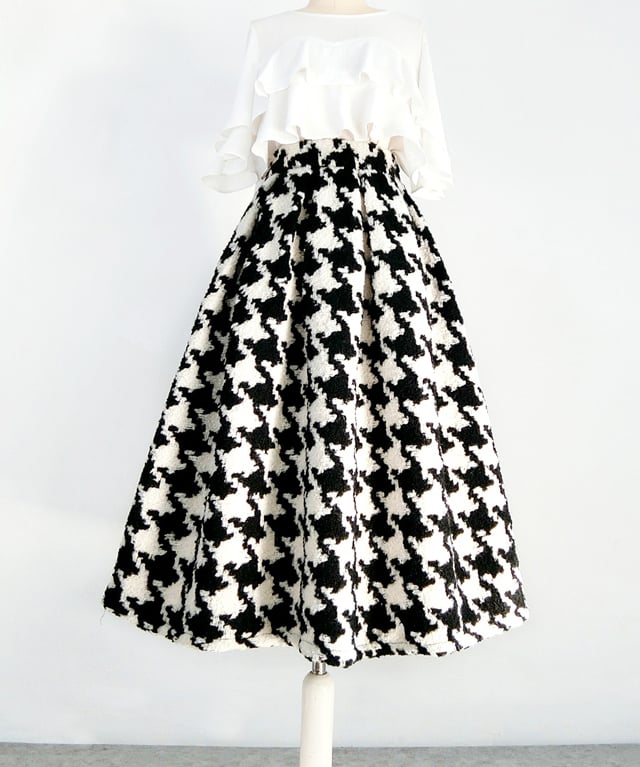 WOMEN BLACK WHITE HOUNDSTOOTH SKIRT WOMEN WINTER PLEATED SKIRT HOUNDSTOOTH WARM WOOL SKIRT PARTY SKIRT WOMEN HOUNDSTOOTH MIDI PLEATED SKIRT HIGH WAIST FULL PLEATED SKIRT CLASSIC BLACK MIDI SKIRT CUSTOM PLUS SIZE PARTY SKIRT TEA LENGTH HOUNDSTOOTH SKIRT Customized party skirt for women is our shop's new items.