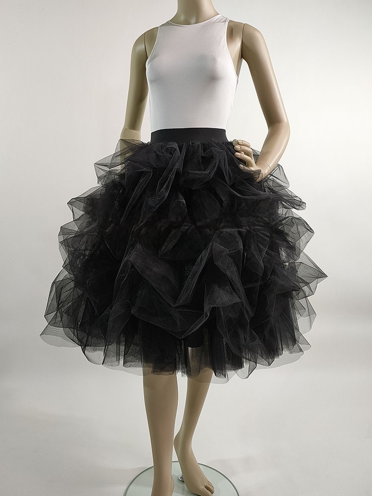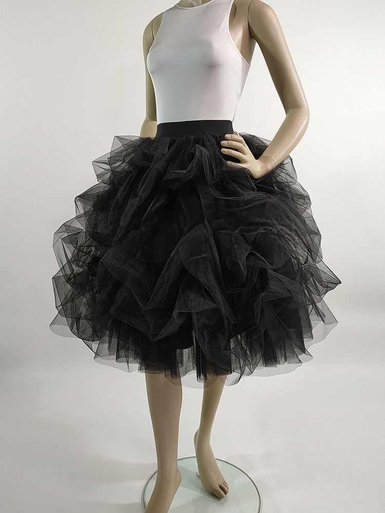 Black Ruffle Tulle Skirt Black Midi Tulle Skirt Wedding Party Skirt Custom Plus Size