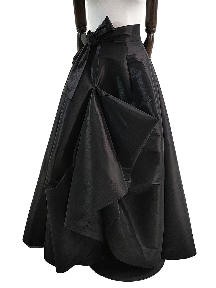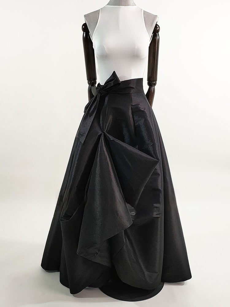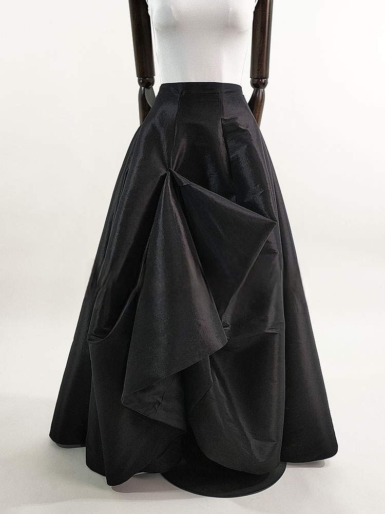Black Long Holiday Party Maxi Skirt Custom Plus Size Black Pleated Formal Skirt