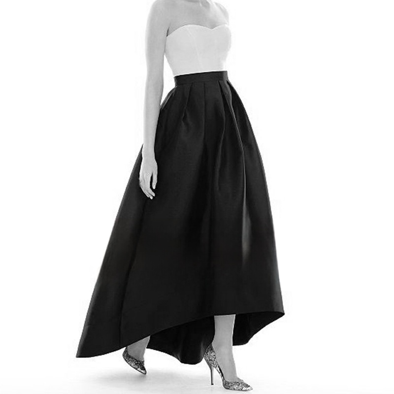 Black High-low Taffeta Skirt Holiday Elegant High Waisted A-line Black Formal Maxi Skirt Custom Plus Size