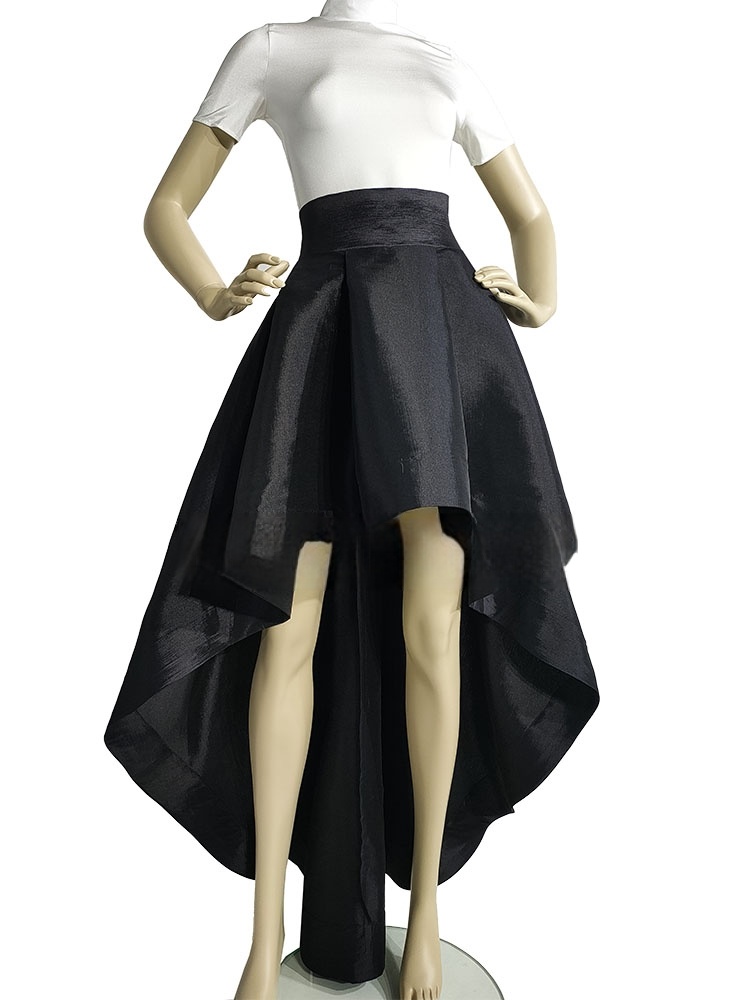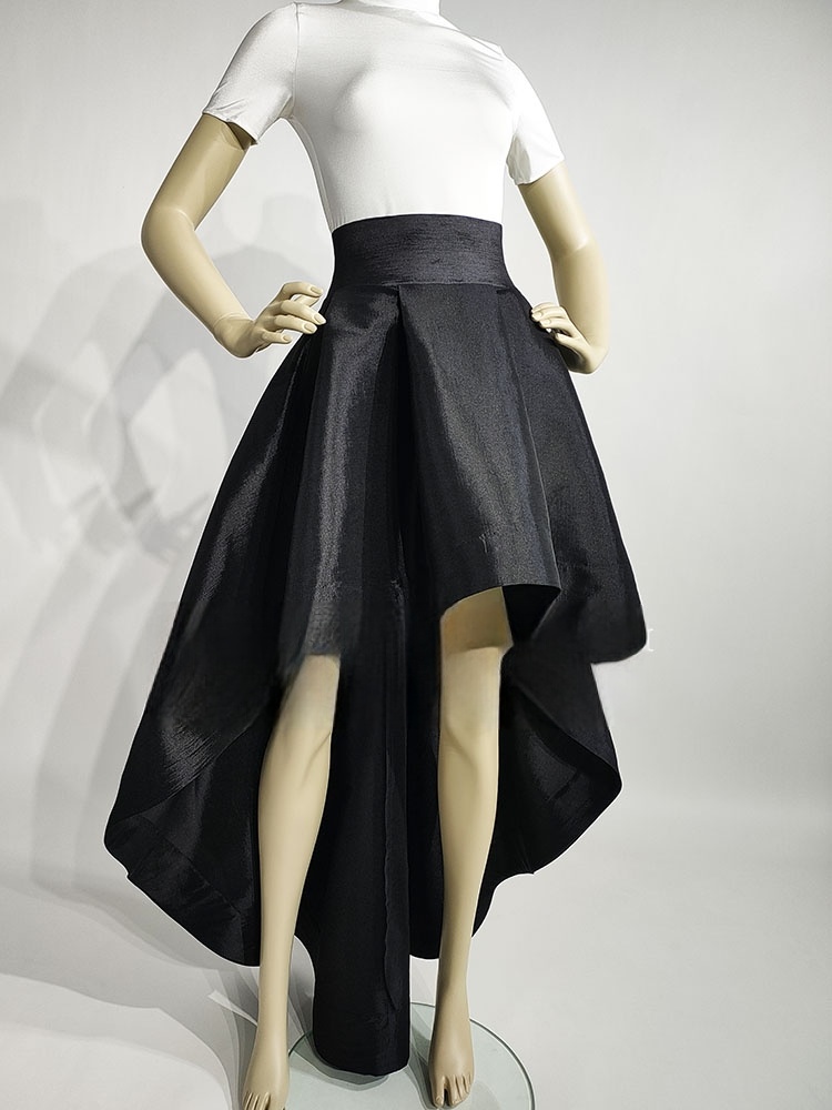 Black High Low Midi Party Skirt Outfit High Waisted A-line Black Wedding Party Skirt Custom Plus Size