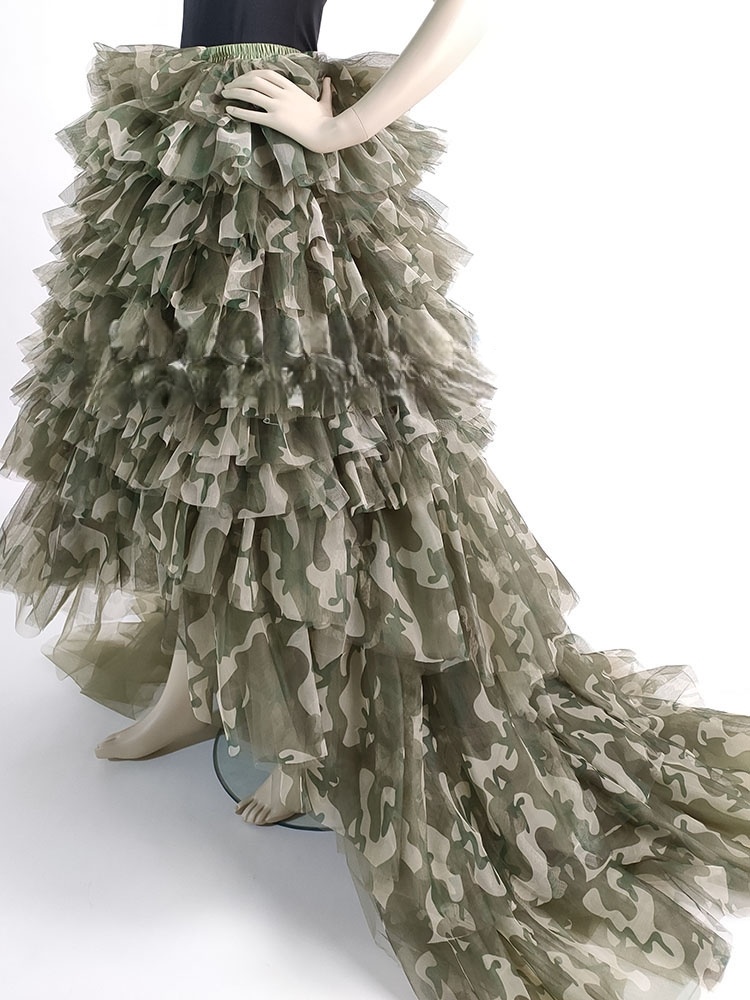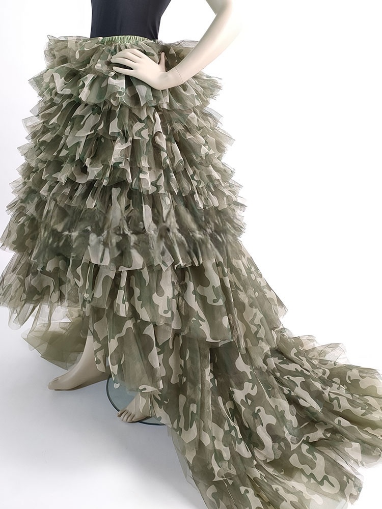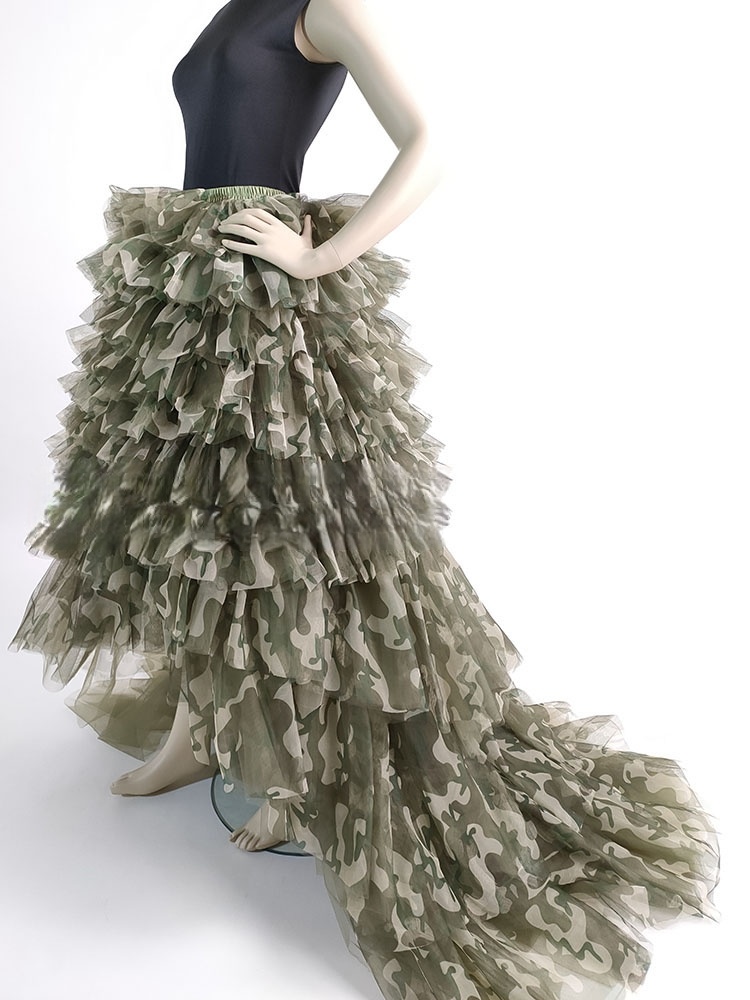 Army Pattern Tiered Tulle Skirt Outfit Army Green High Waisted Tiered Tulle Maxi Skirt Wedding Photo Prop
