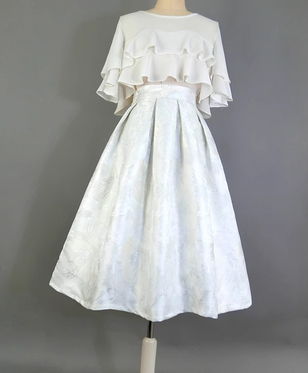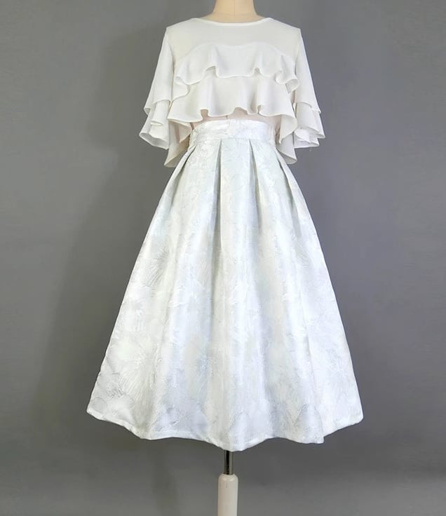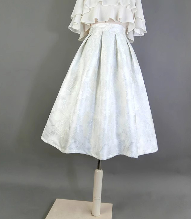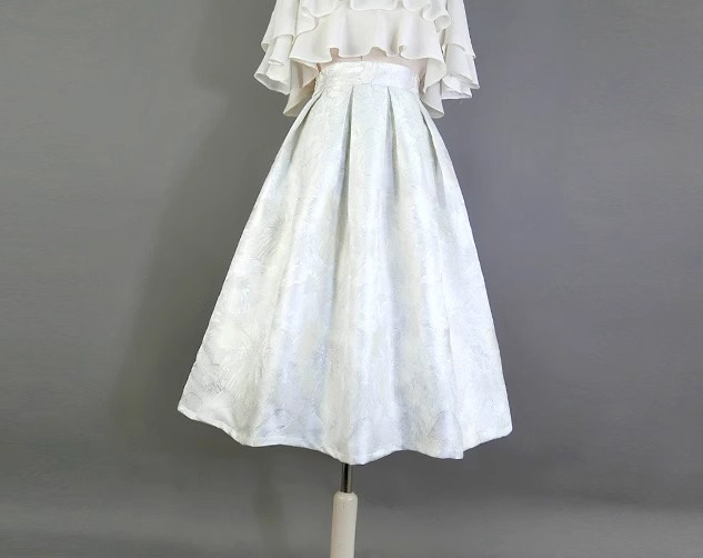 WOMEN MIDI PLEATED SKIRT OUTFIT A-LINE SILVER PLEATED PARTY SKIRT FORMAL SKIRT CUSTOM PLUS SIZE PLEATED SKIRT OUTFIT MIDI FULL PLEATED SKIRT
