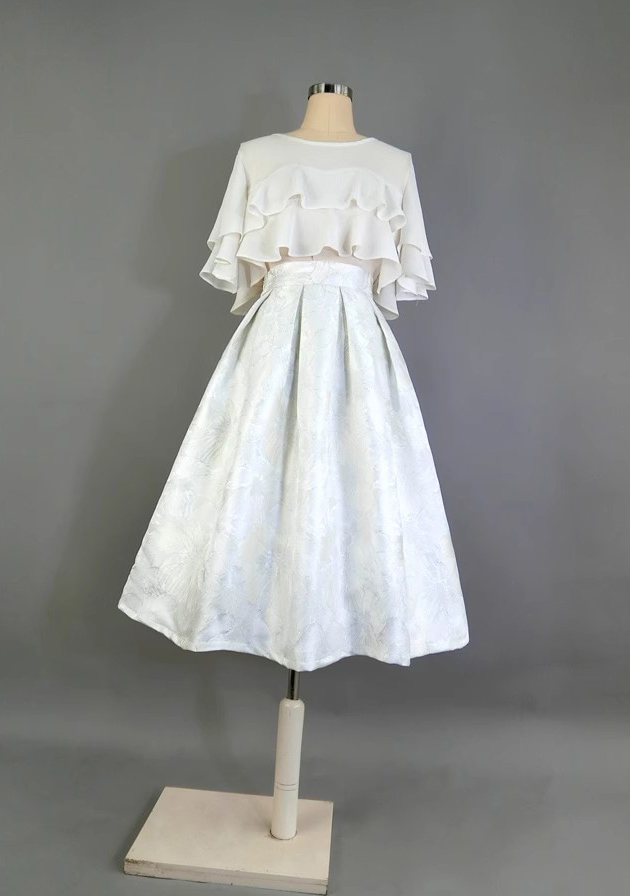A-line Silver Midi Pleated Skirt Outfit Women Custom Plus Size Elegant Pleated Party Skirt
