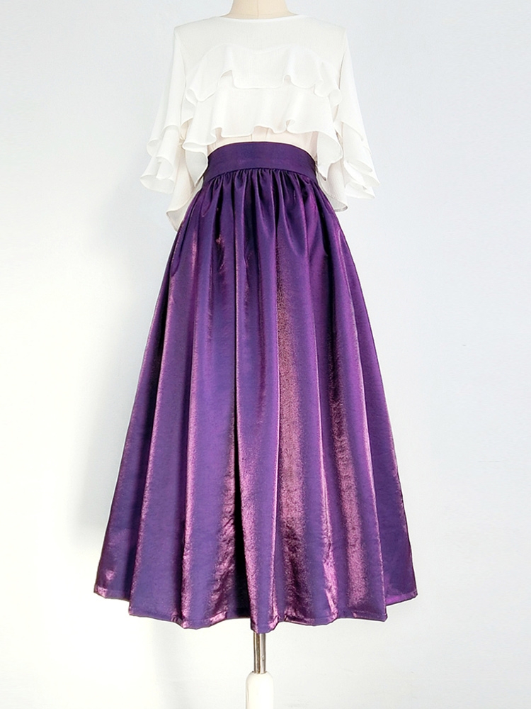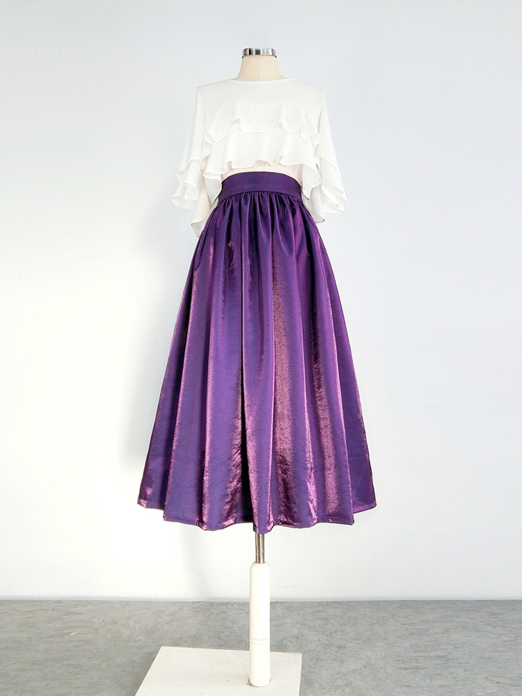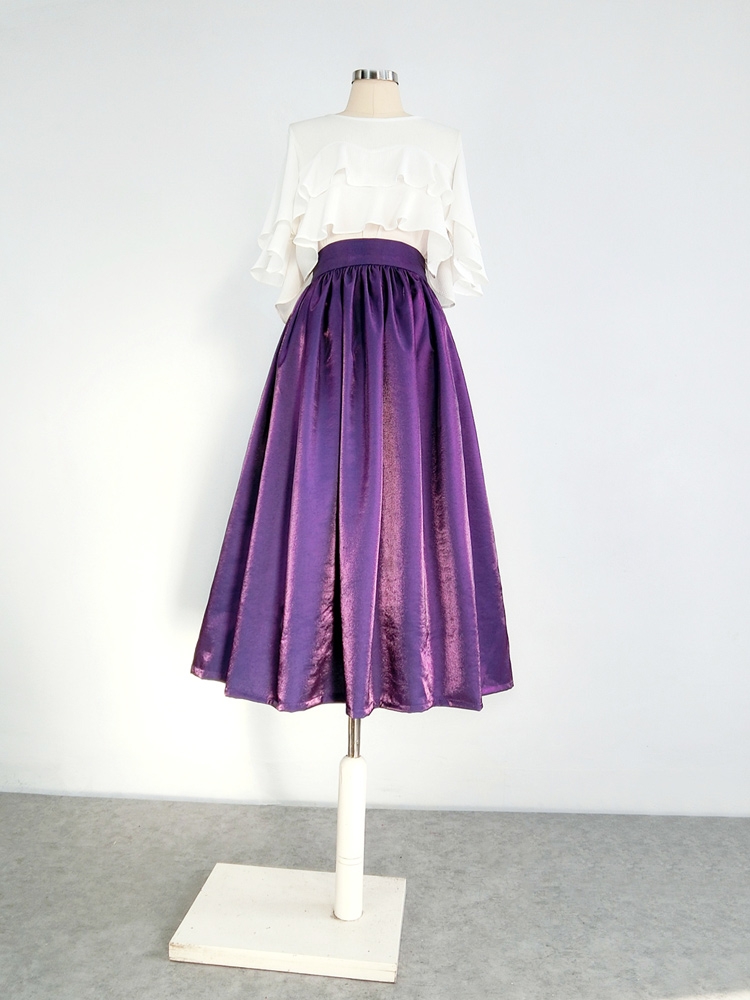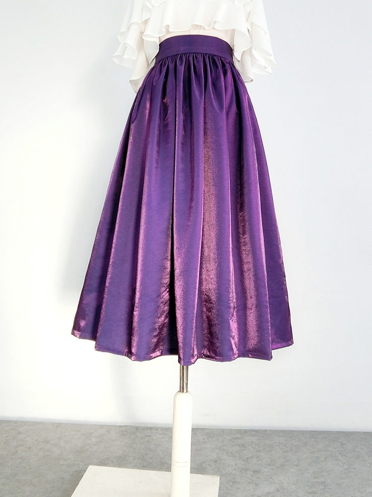 Purple Vintage Pleated Skirts Holiday Outfit Women High Waisted Pleated Midi Skirts