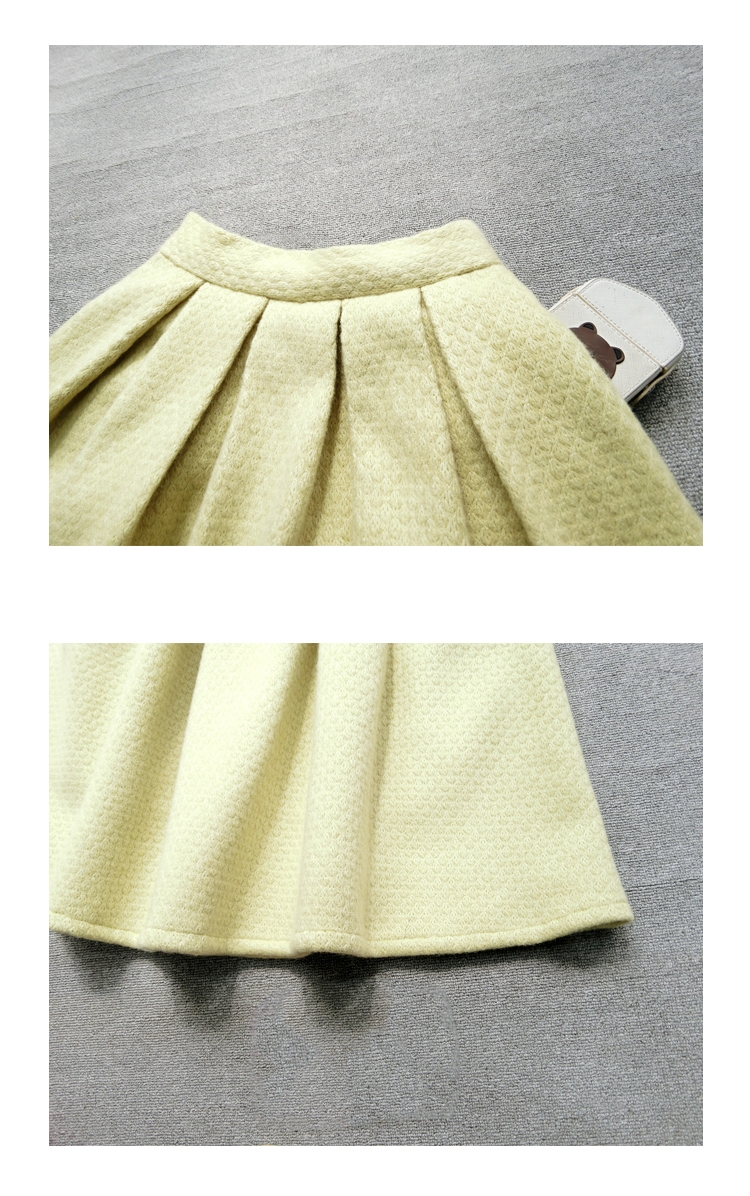 * High waist / full pleated. Actually this skirt is needed much more cloth than usual skirt.