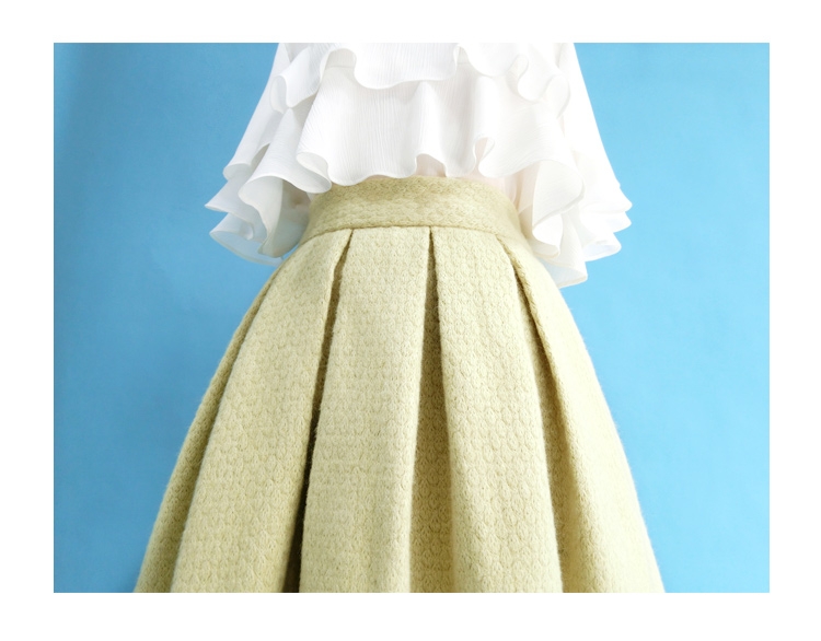 Winter Light Green Woolen Skirt High Waisted Mint Green Holiday Party Skirt Warm Custom Plus Size Christmas Outfit