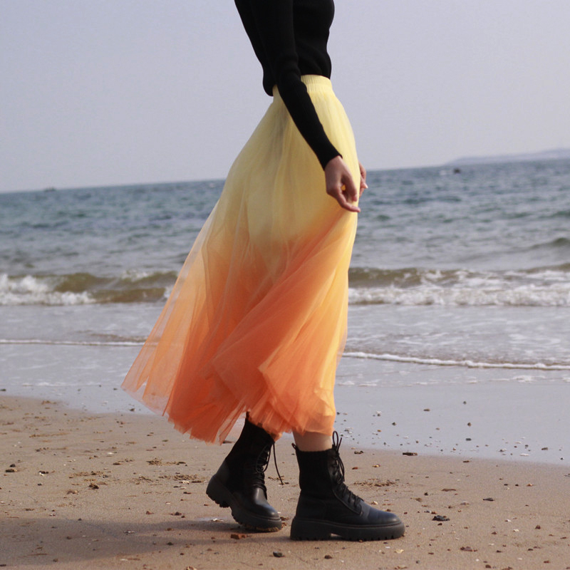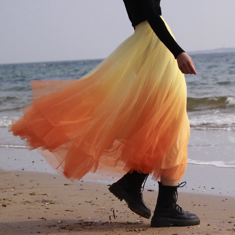 WOMEN YELLOW FULL TULLE SKIRT HIGH WAISTED TIE DYE TULLE SKIRT TIE DYE TULLE TUTU SKIRT OUTFIT A-line HOLIDAY PARTY TULLE SKIRT YELLOW ORANGE WEDDING SKIRT SEPARATES Full Length Tulle Skirt, Custom for Plus Size, Elastic waist band, best choices for wedding and gathering, Unique Tulle Fabric, Chic and Creative, don't miss it!