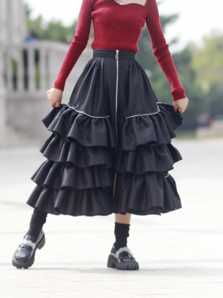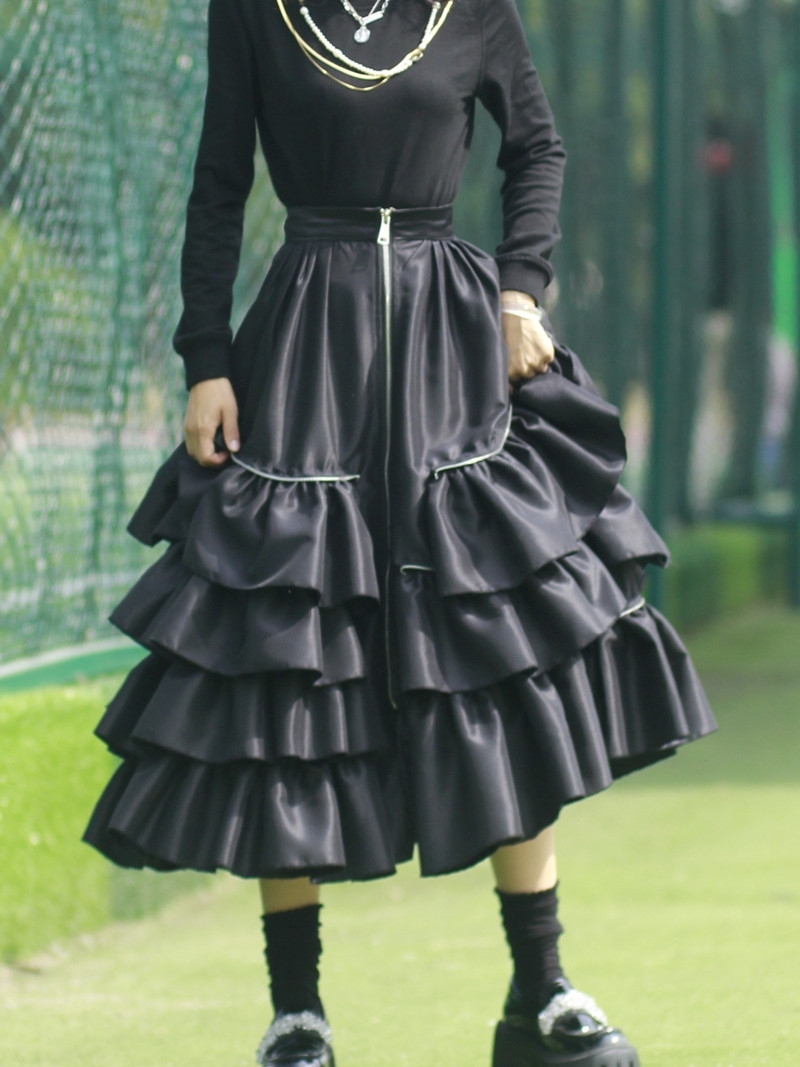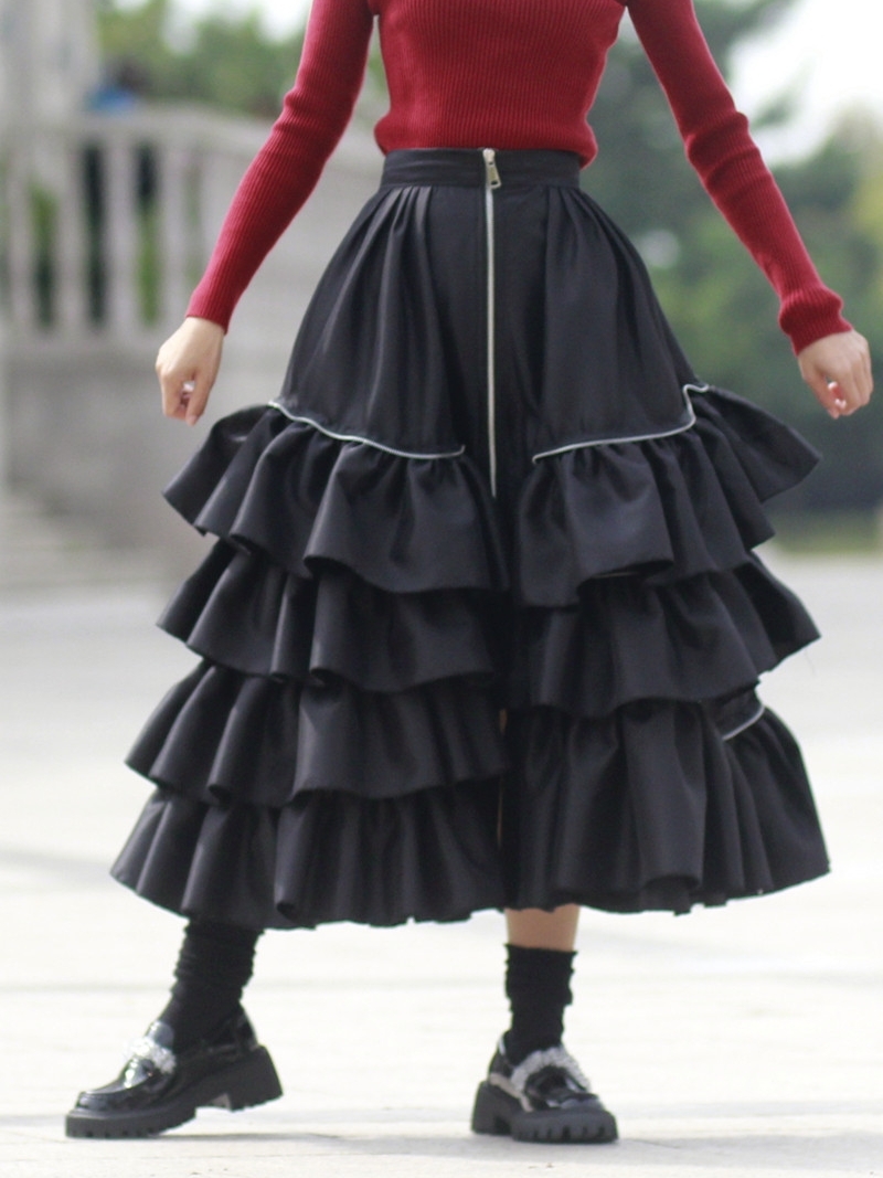 Black Layered Taffeta Satin Skirt Black Puffy Full Circle Ball Gown Skirt Custom