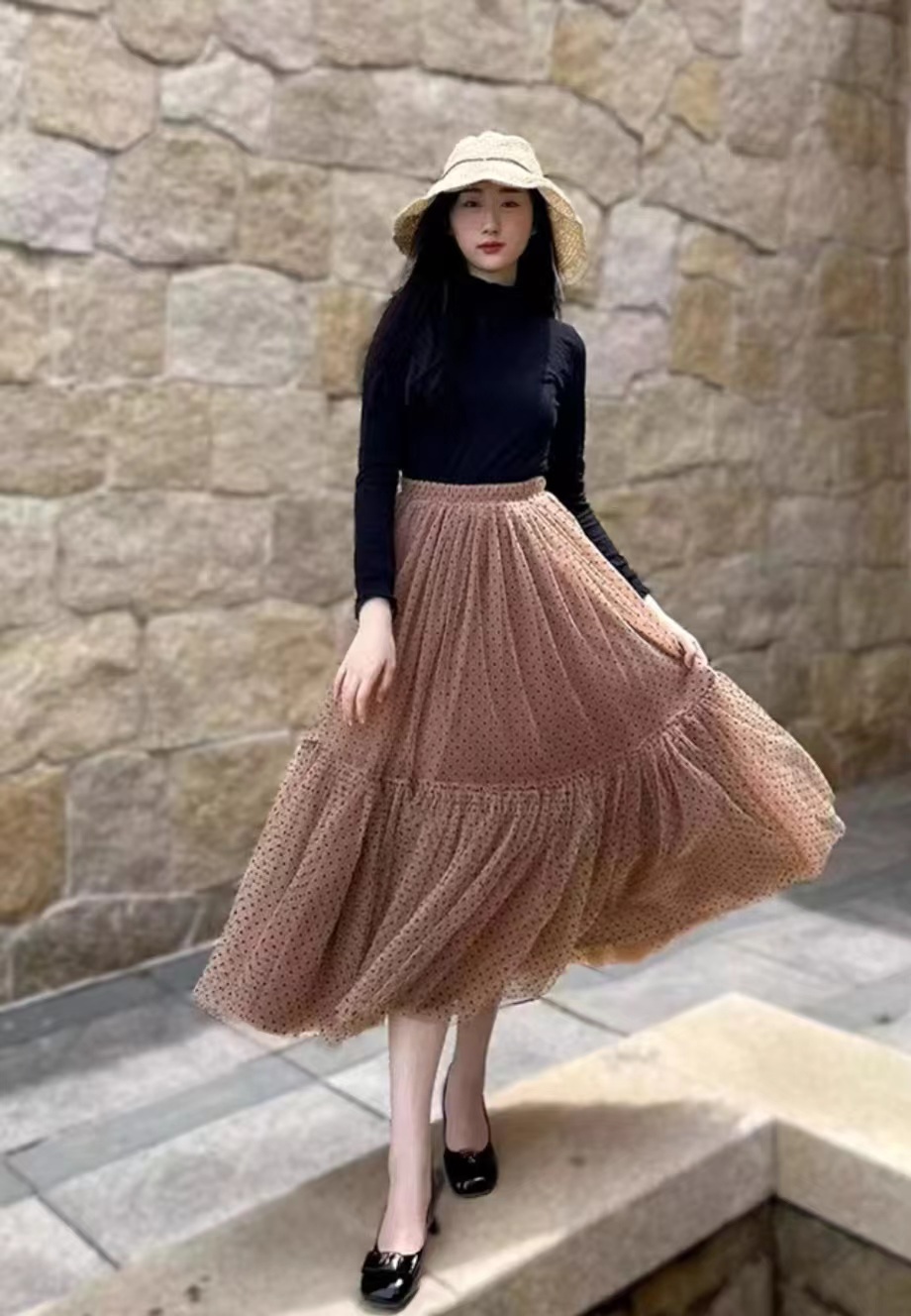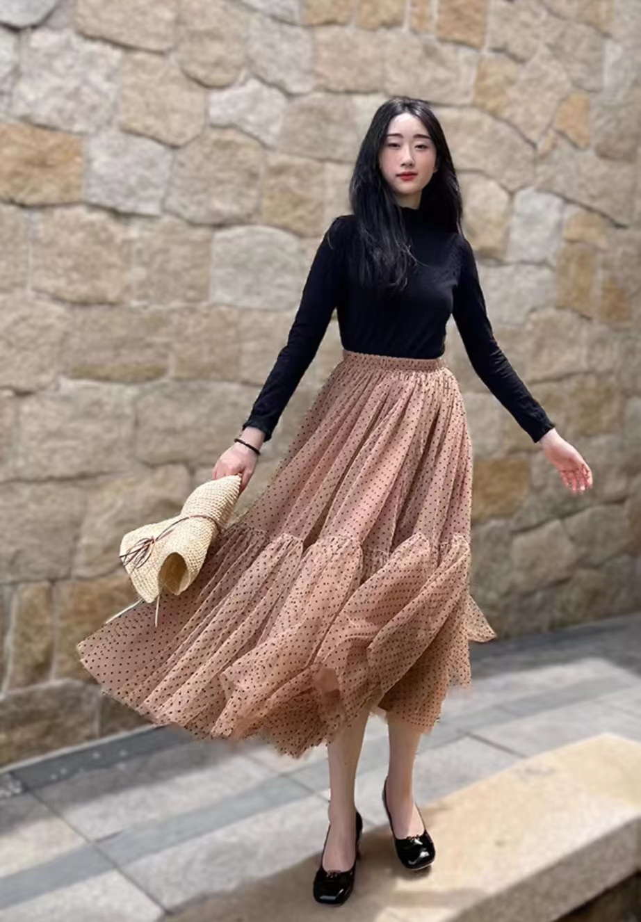 KHAKI Polka Dot Layered Tulle Skirt Vintage Inspired Holiday Tulle Skirt Layered Dot Tutu Skirt Custom Plus Size