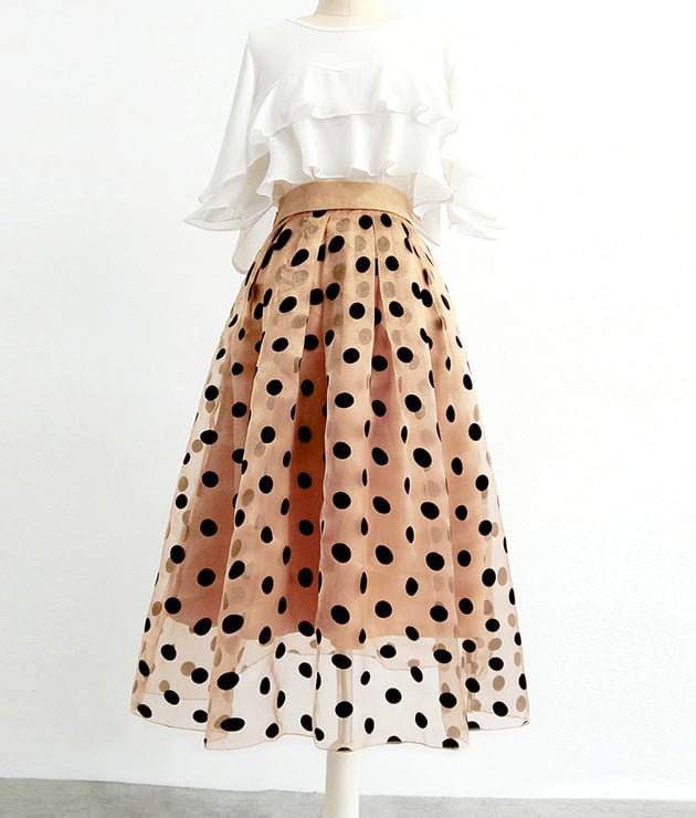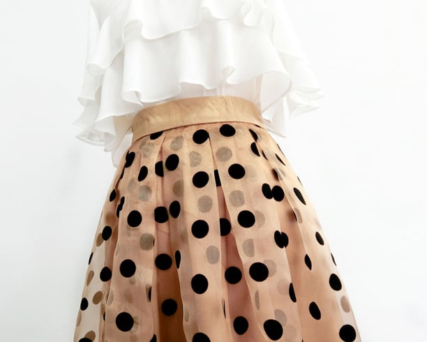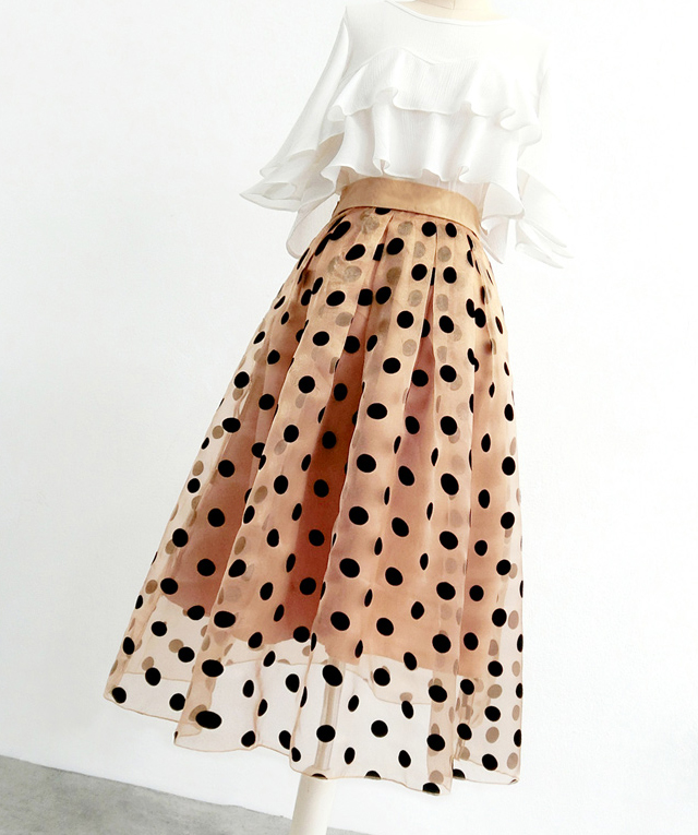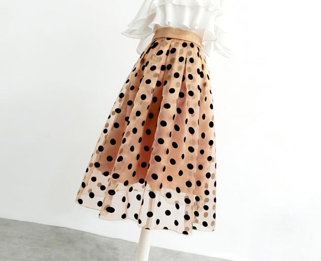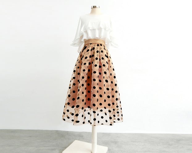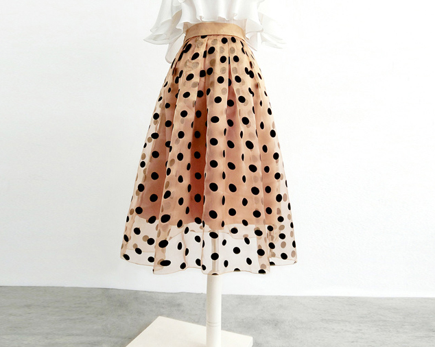 Summer Polka Dot A line Tulle Tutu Skirt Outfit High Waisted Tulle Midi Skirt Custom Holiday Party Dance Skirt