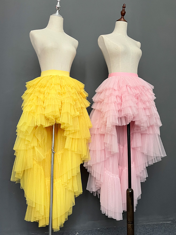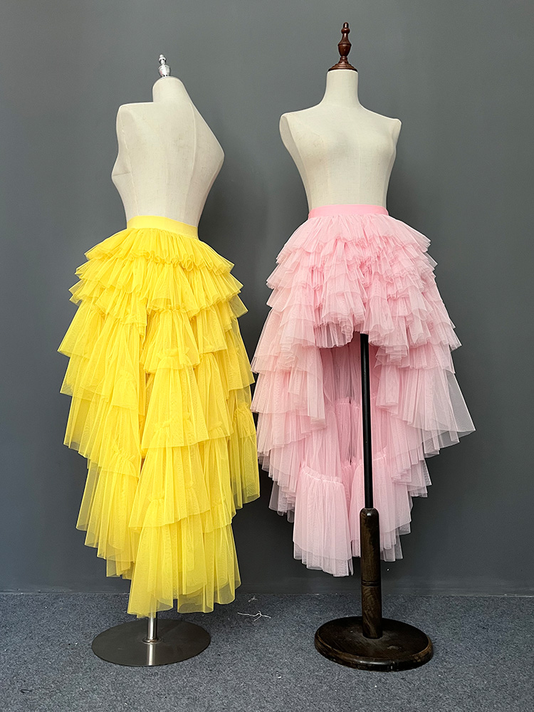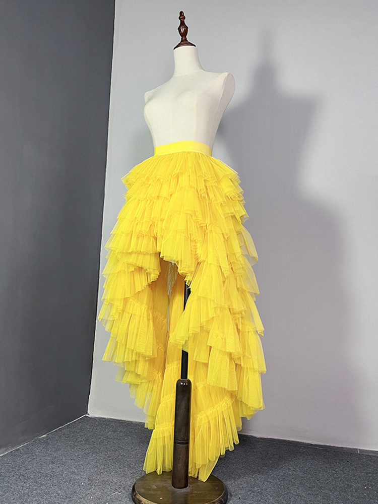 2023 Women High low tulle skirt Yellow Layered Tulle Skirt Yellow Wedding Hi-lo Tiered Long Tulle Skirt Outfit Bridal Shower Tulle Tutu Skirt High Waisted Custom Size, Unique design, don't miss it!