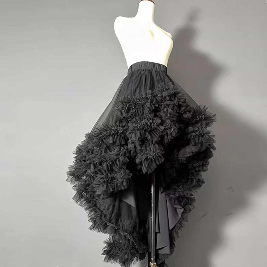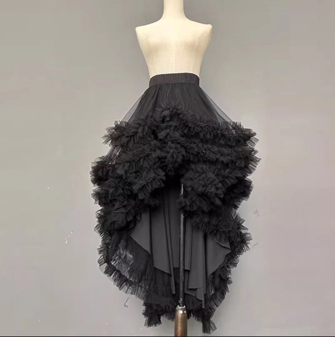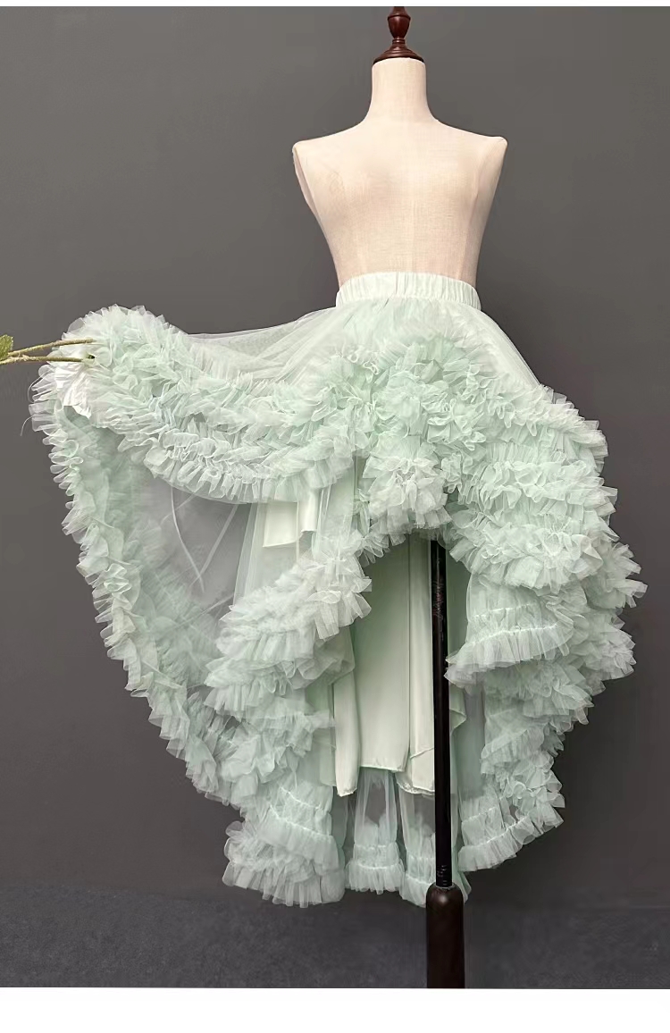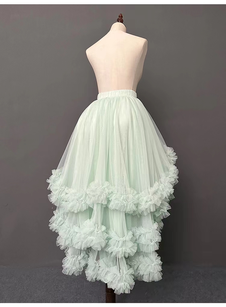 2023 Women High low tulle skirt Outfit Ruffle Layered Tulle Skirt Hi-lo Tiered Long Tulle Skirt Outfit White Bridal Shower Tulle Tutu Skirt Outfit Wedding Outfit, White, Black, and Mint green available, High Waisted Plus Size, Unique design, don't miss it!