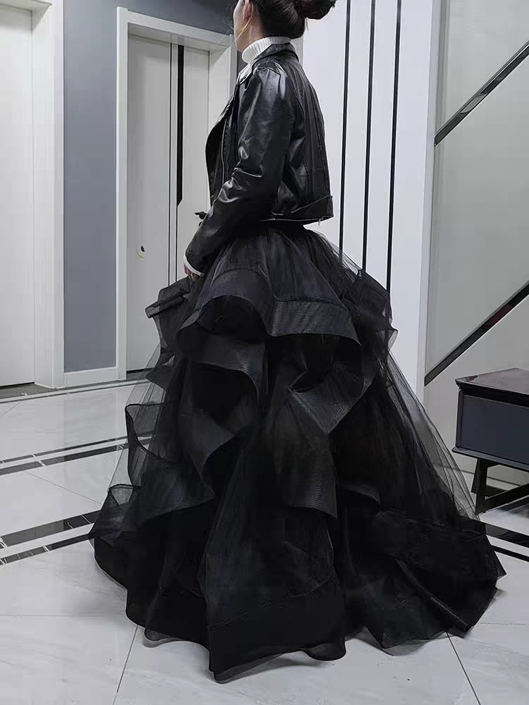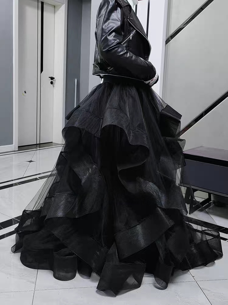 BLACK Ruffle Layered Tulle Skirt Bridal Layered Tulle Maxi Skirt Wedding Photo Prop Romantic Party Skirt Outfit Custom Plus Size