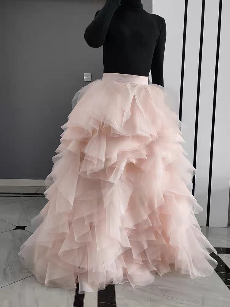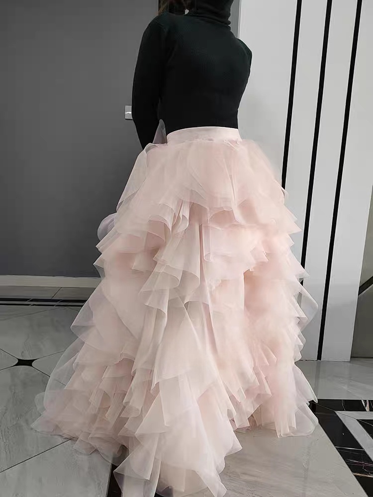 2023 Women PINK MAXI tulle skirt Outfit Ruffle Layered Tulle Skirts Wedding Tiered Long Tulle Skirt Outfit Pink Bridal Shower Tulle Tutu Skirt Pink Wedding Outfit High Waisted Plus Size, Unique design, don't miss it!