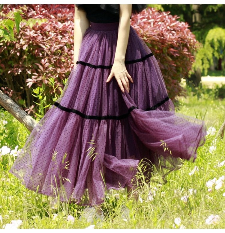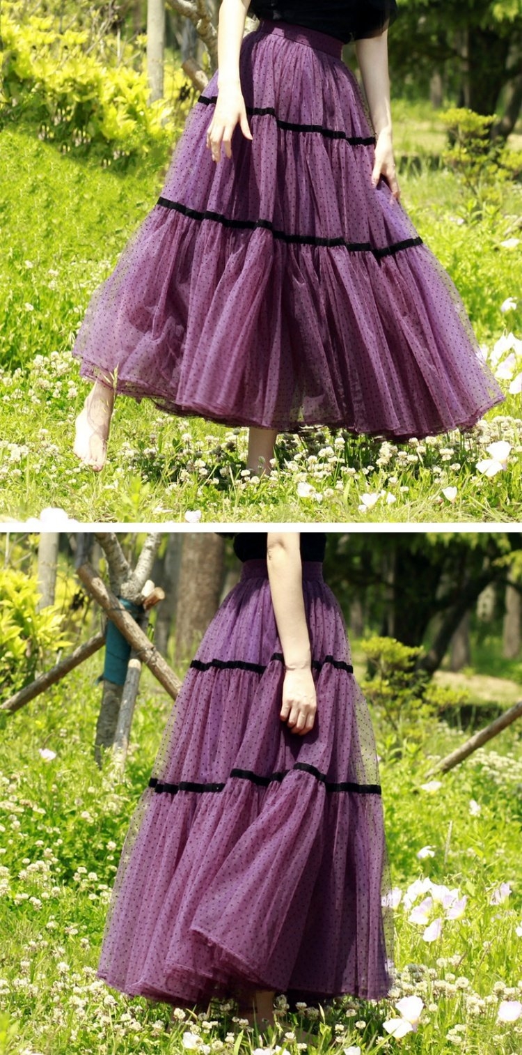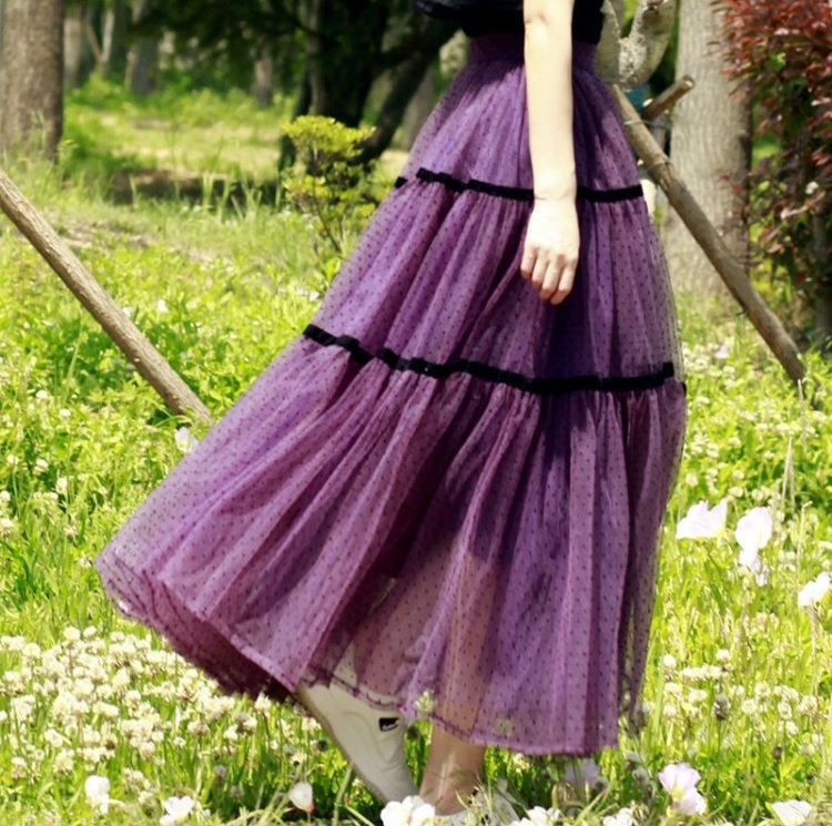 Vintage PURPLE Polka Dot Long Tulle Skirt Layered Tulle Skirt Outfit Holiday Party Tulle Skirt Custom Plus Size