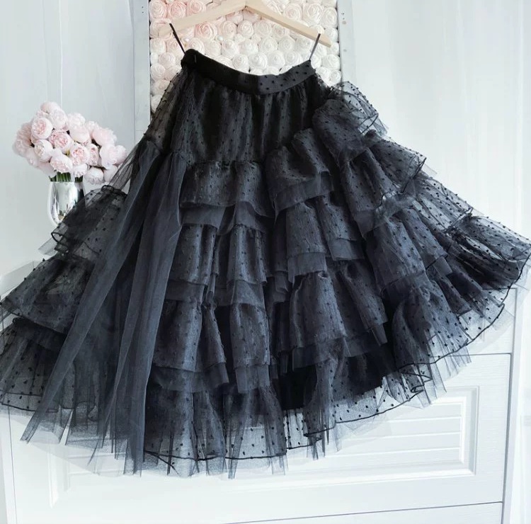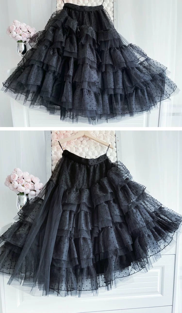 BLACK Polka Dot Tiered Tulle Skirt White Tulle Skirt Princess Skirt Outfit Holiday Party Tulle Skirtsirt Custom Plus Size
