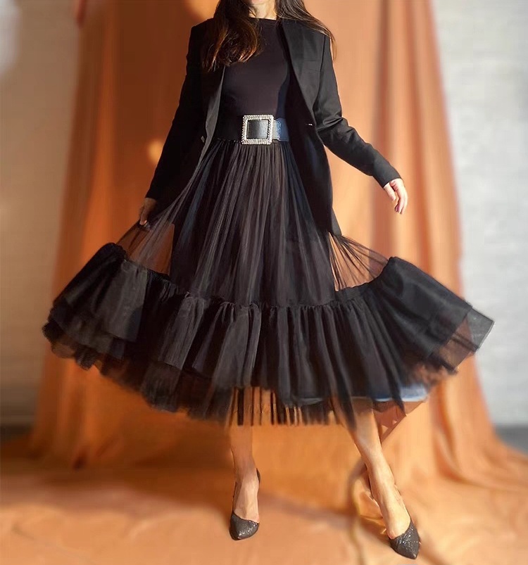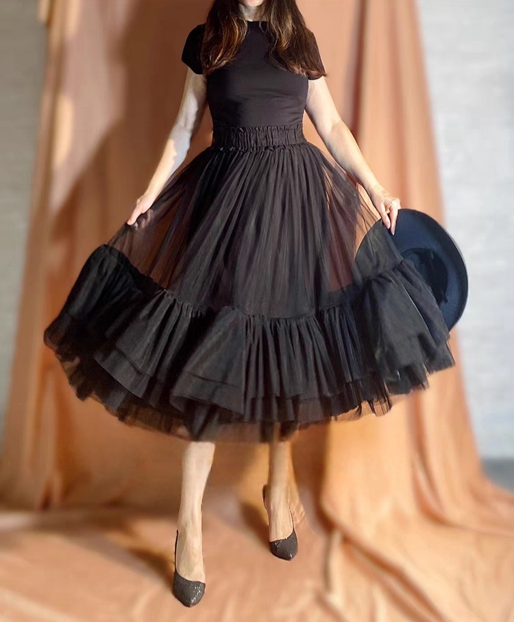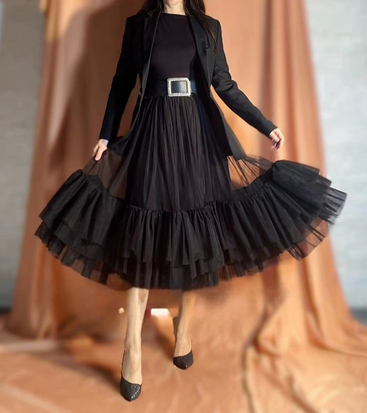 BLACK Layered Tulle Skirt Holiday Outfit Black Puffy Princess Skirt Holiday Party Tulle Skirt Custom Plus Size