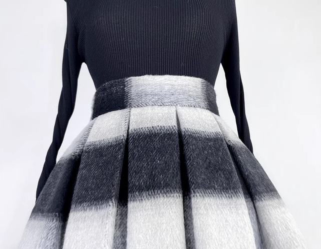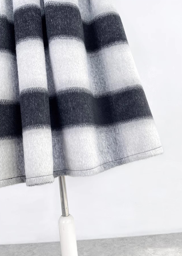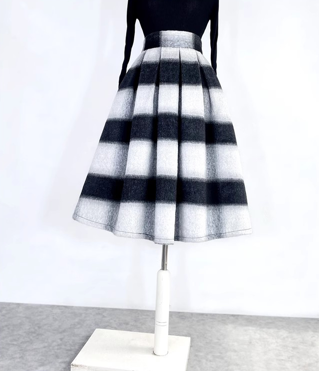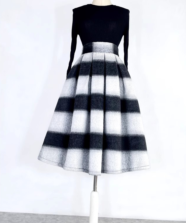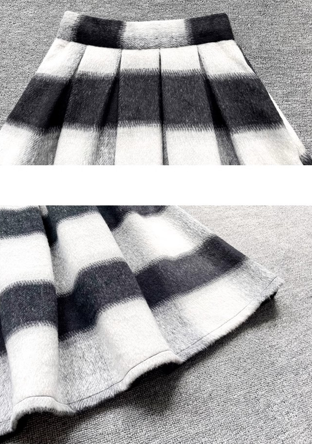 Winter Striped Midi Pleated Skirt Women Warm Pleated Holiday Skirt Outfit Wool-blend Party Midi Skirt Plus Size