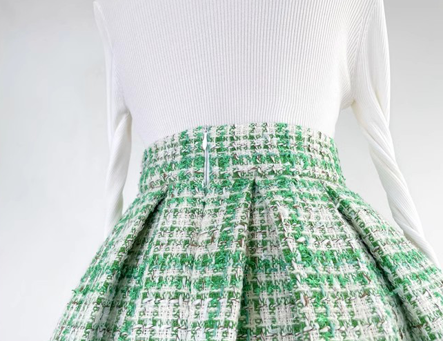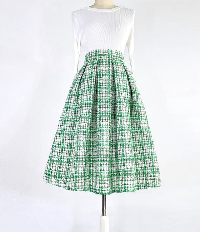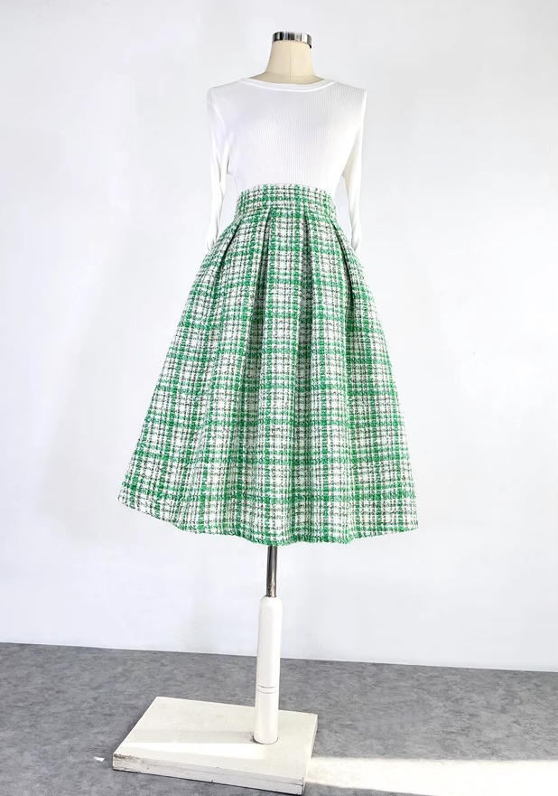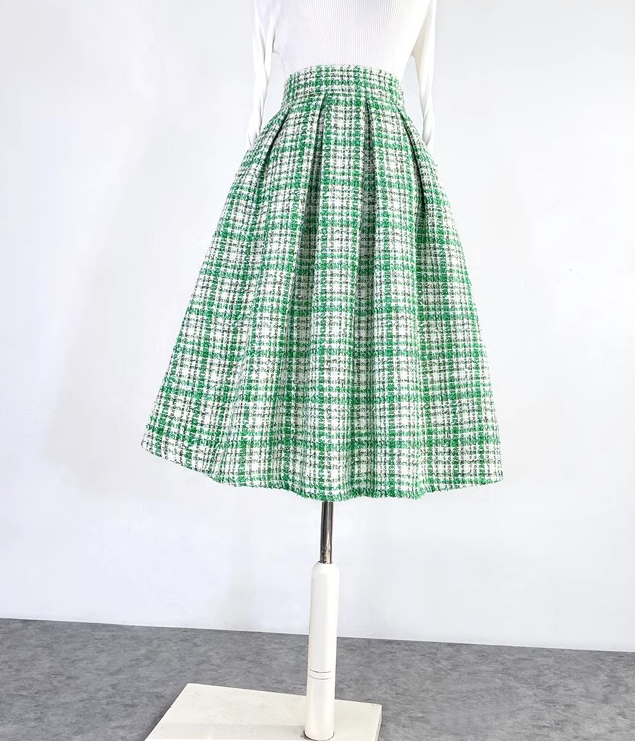 GREEN Houndstooth Skirt Outfit Woolen Party Skirt Houndstooth Pleated Midi Party Skirt Green Midi Wool Party Skirt Custom Plus Size