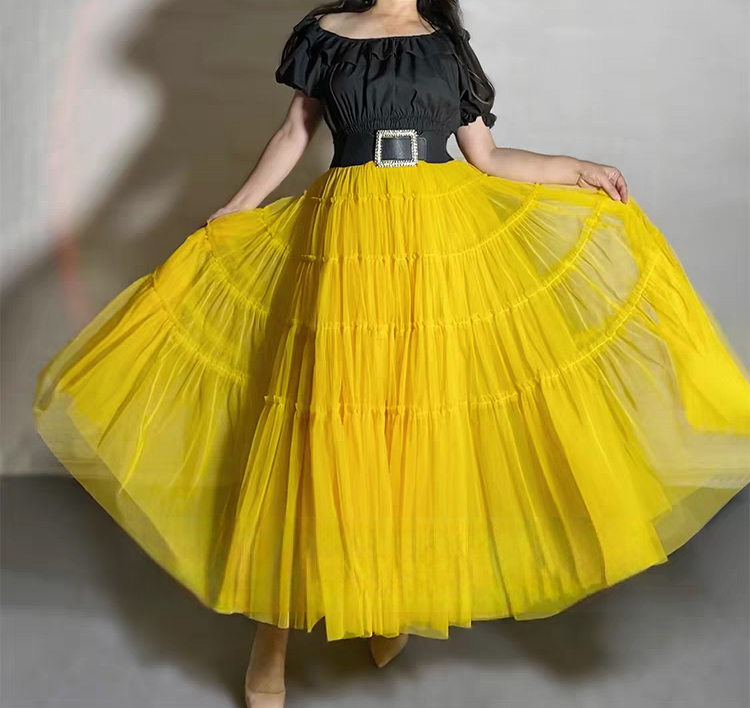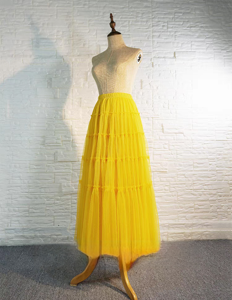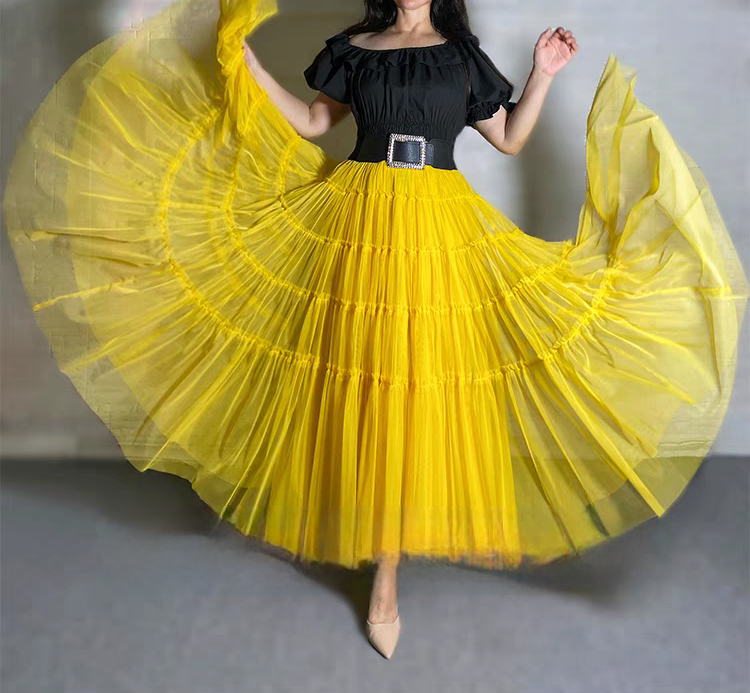 YELLOW Tiered Long Tulle Skirt Outfit Women Elastic Full Tulle Skirt Wedding Party Skirt Plus Size Mesh Skirt