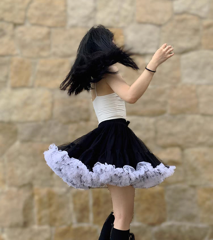 This tulle skirt is made from many layered top quality Tulle and one piece of imitating soft satin lining.