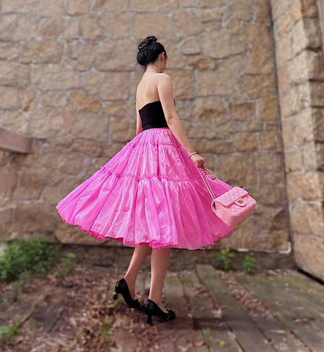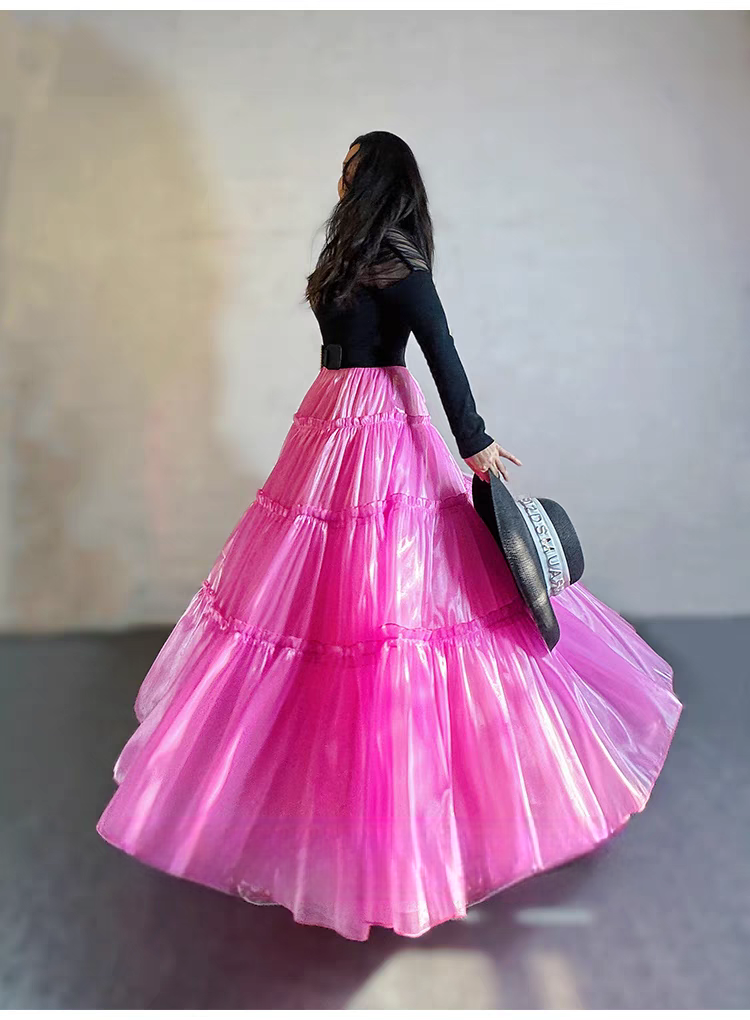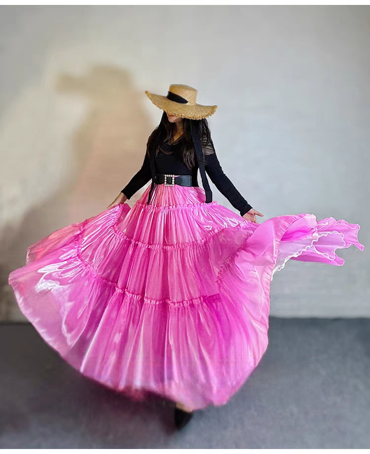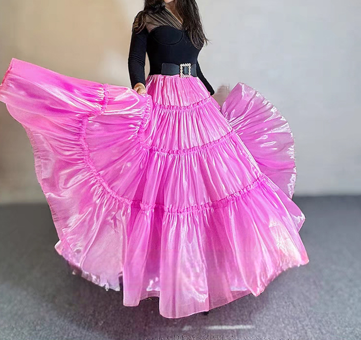 Fuchsia Layered Party Skirt Outfit Glossy Satin Maxi Skirt Holiday Outfit Layered Full Circle Ball Gown Plus Size
